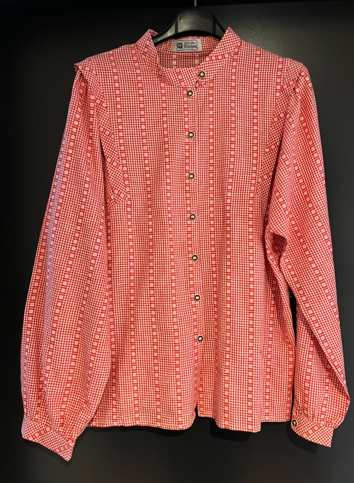 Damen Trachten Bluse/Hemd Rot-Weiß gemustert ca. Gr. 38v. gg Orig. Trachten