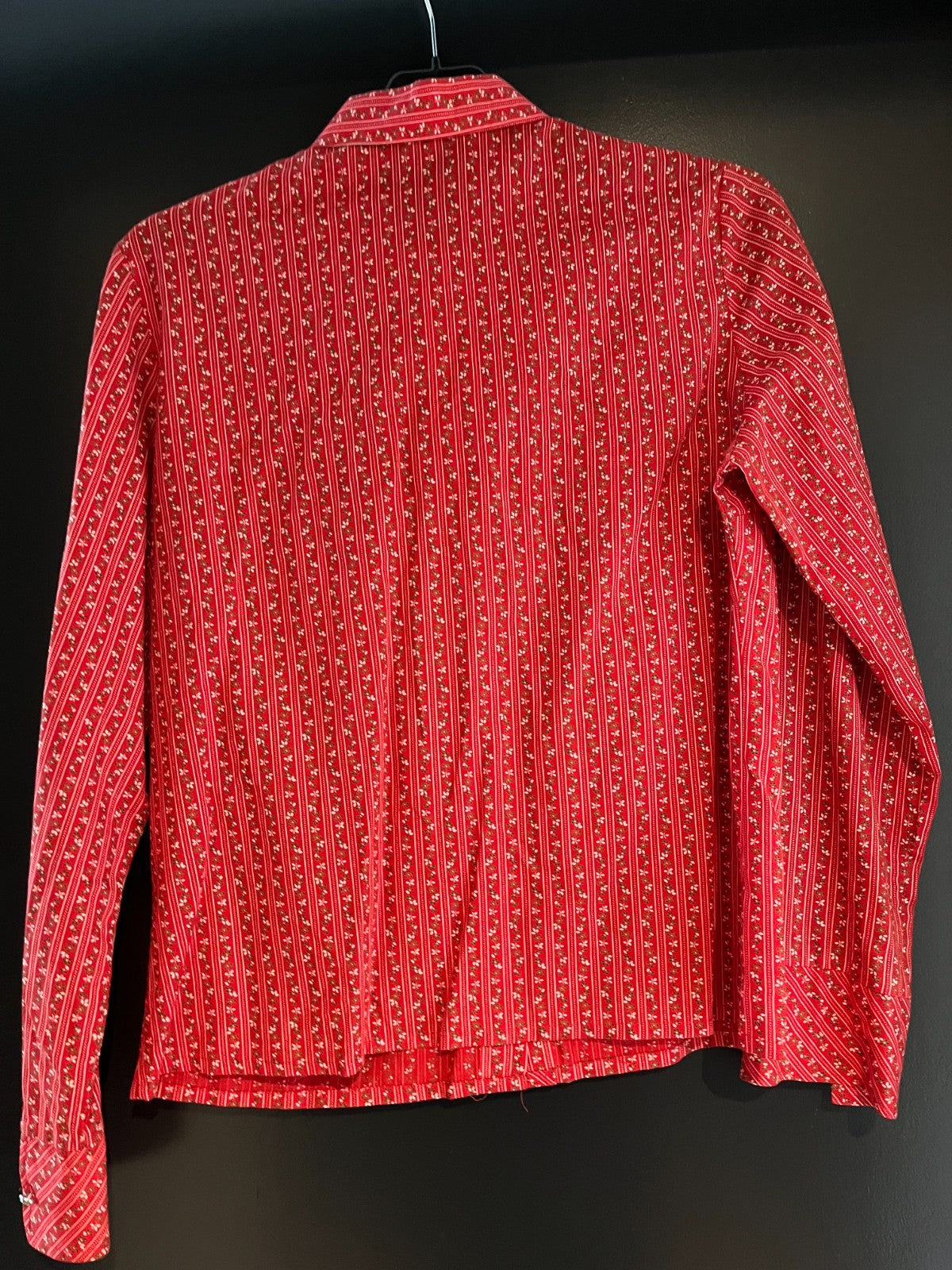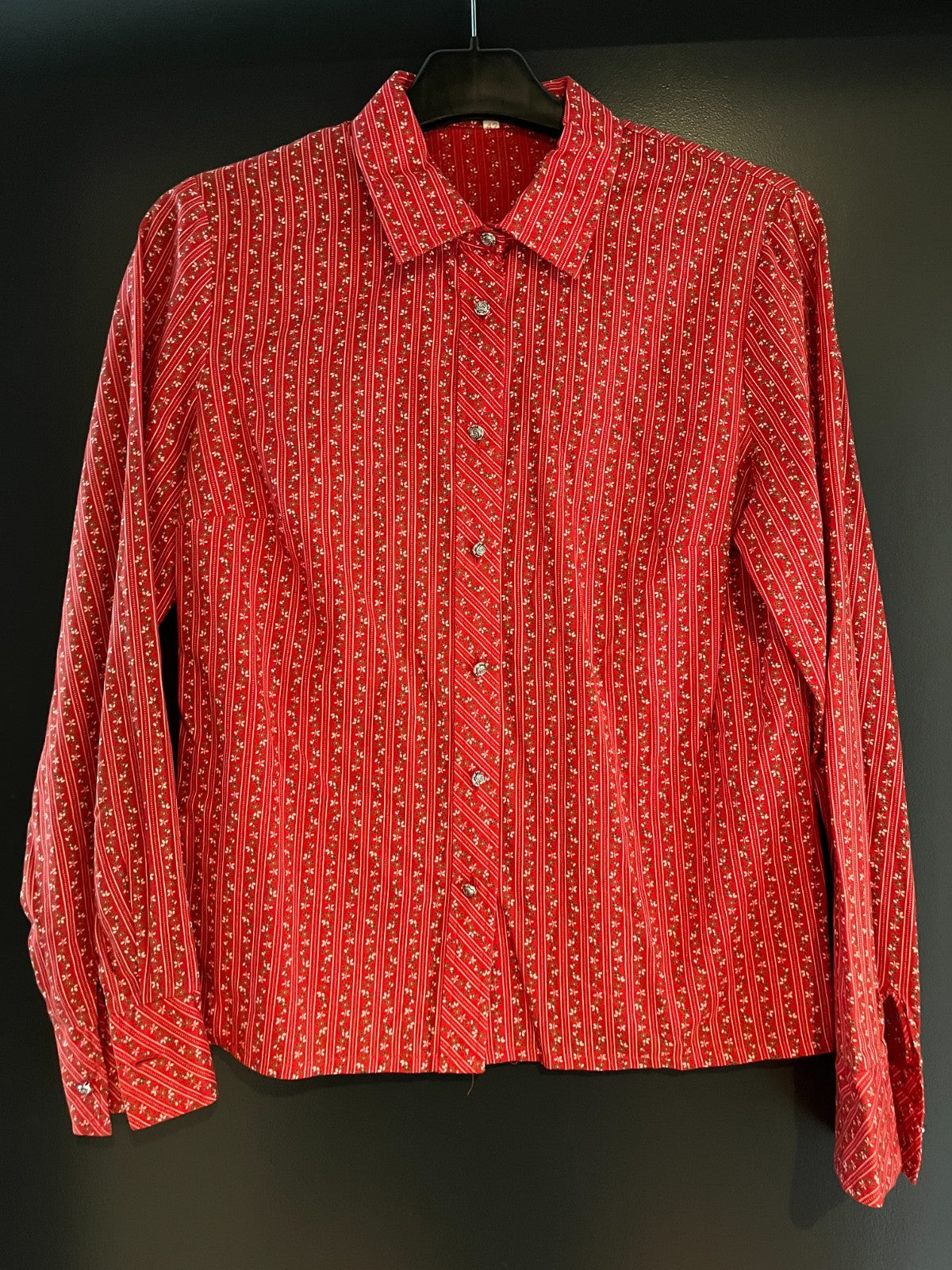 Damen Trachten Bluse/Hemd Rot-Weiß/Grün gemustert ca. Gr. 42