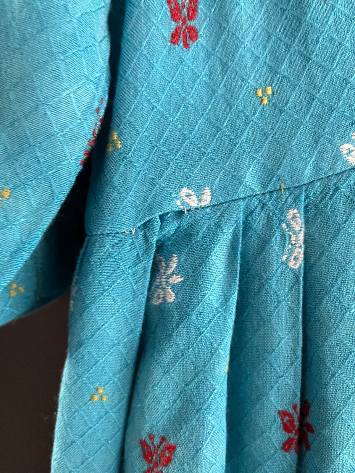 gebrauchtes Damen Trachten Dirndl 3/4-ArmBlau geblümtohne Schürzeohne Größenangabe, schätzungsweise Gr. 40 (s. Maße)einfache Brustweite: ca. 46 cm