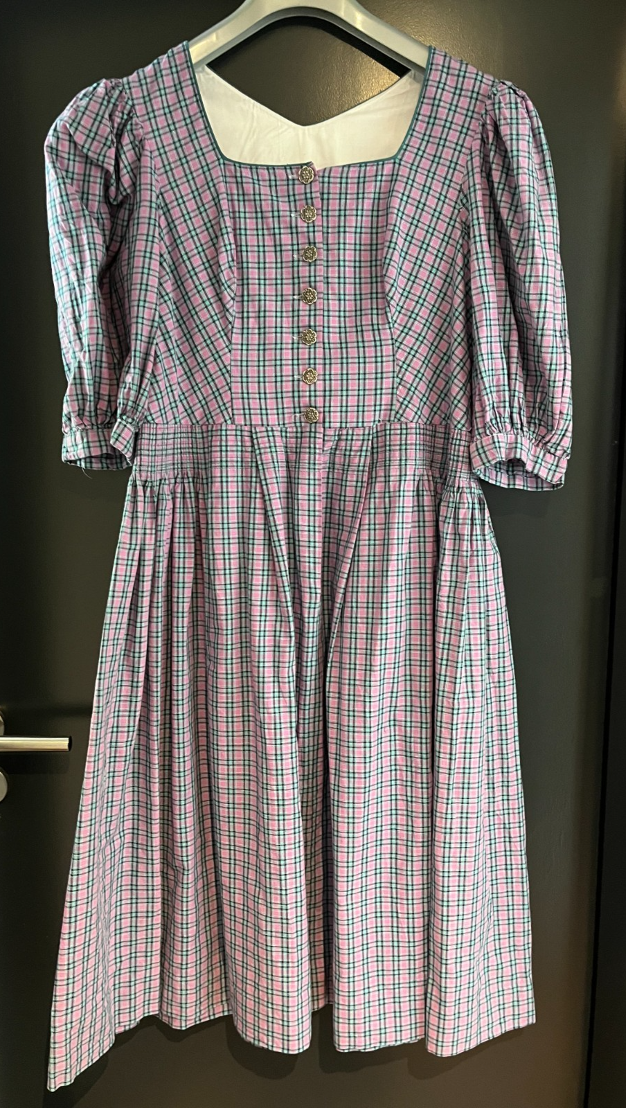 gebrauchtes Damen Trachten Dirndl 3/4 ArmLila, Grün gemustertohne Schürzeca. Gr. 44 (s. Maße) einfache Brustweite: ca. 48 cmeinfache Taillenweite: ca. 42 cm