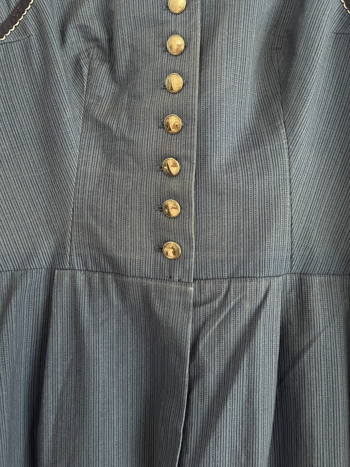 Damen Trachten Dirndl ärmellos Blau gemustert ca. Gr. 44 v. Straßer