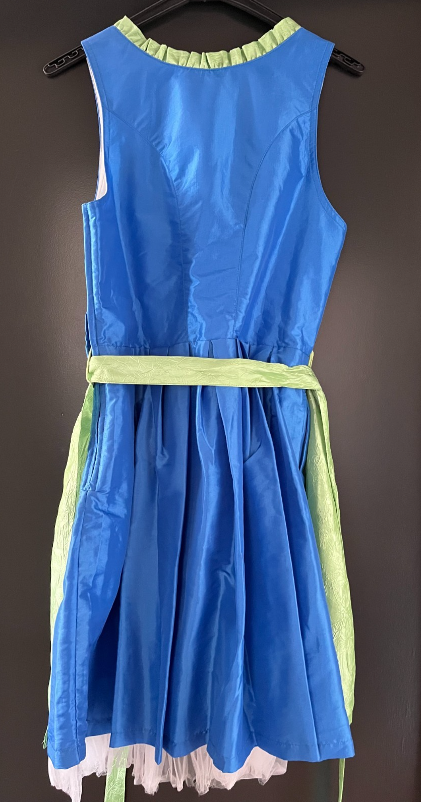 Damen Trachten Dirndl ärmellos Blau, Grün mit Schürze ca. Gr. 38 v. NKD