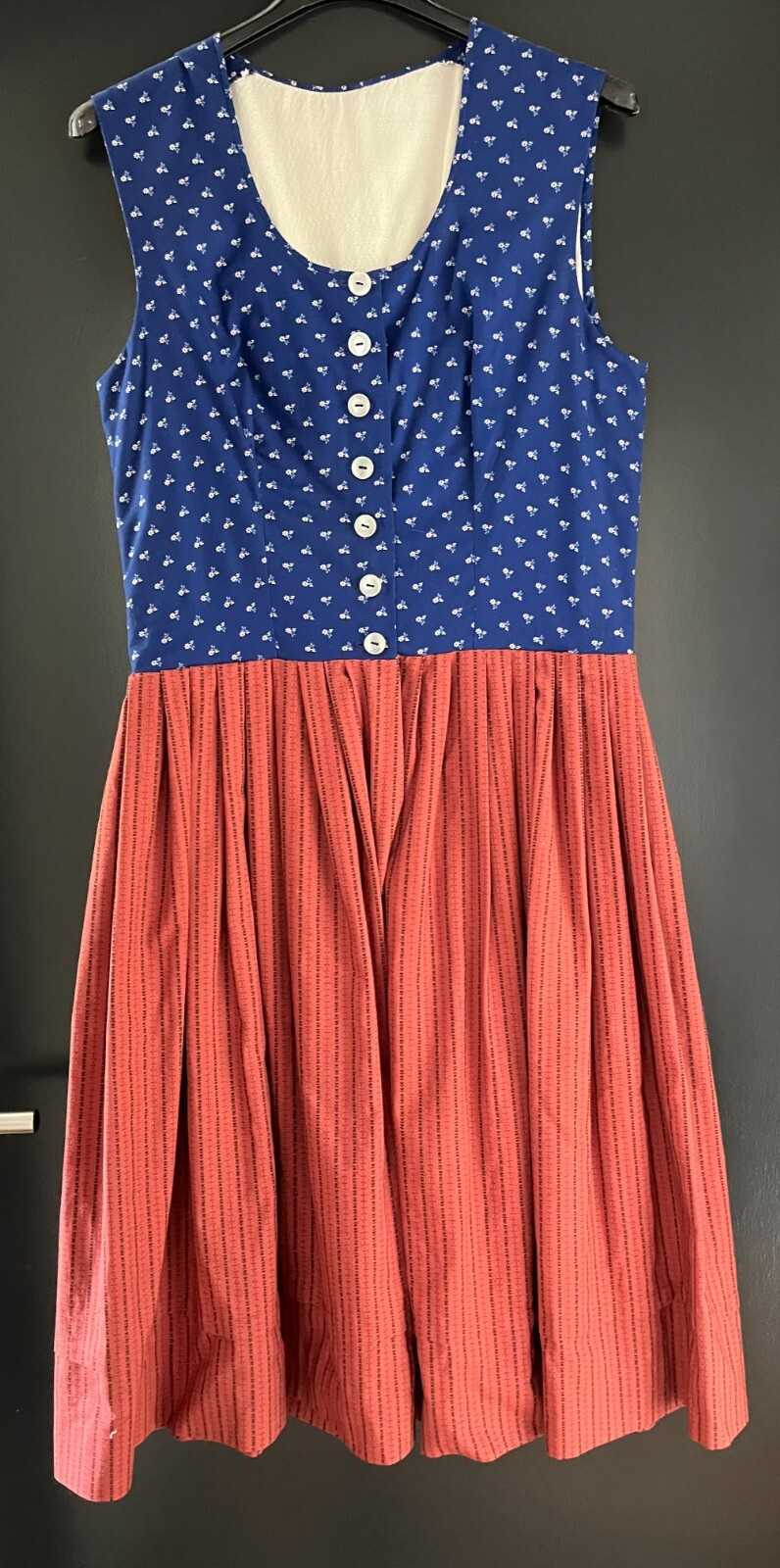 Damen Trachten Dirndl ärmellos Blau, Rot gemustert ca. Gr. 38