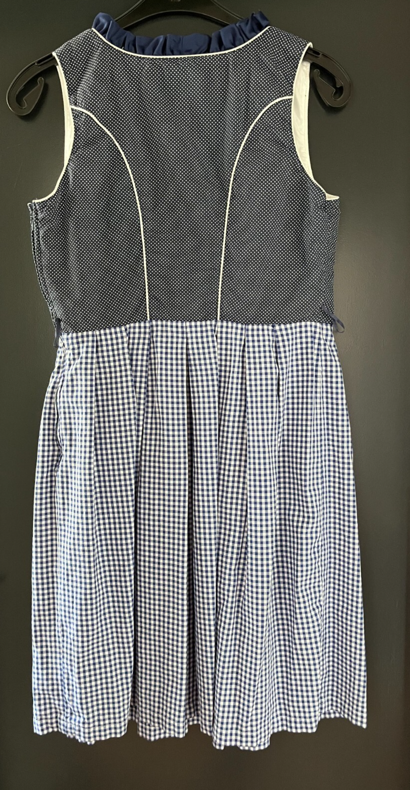 Damen Trachten Dirndl ärmellos blau, weiß gemustert Gr. 40/42 v. Waldschütz