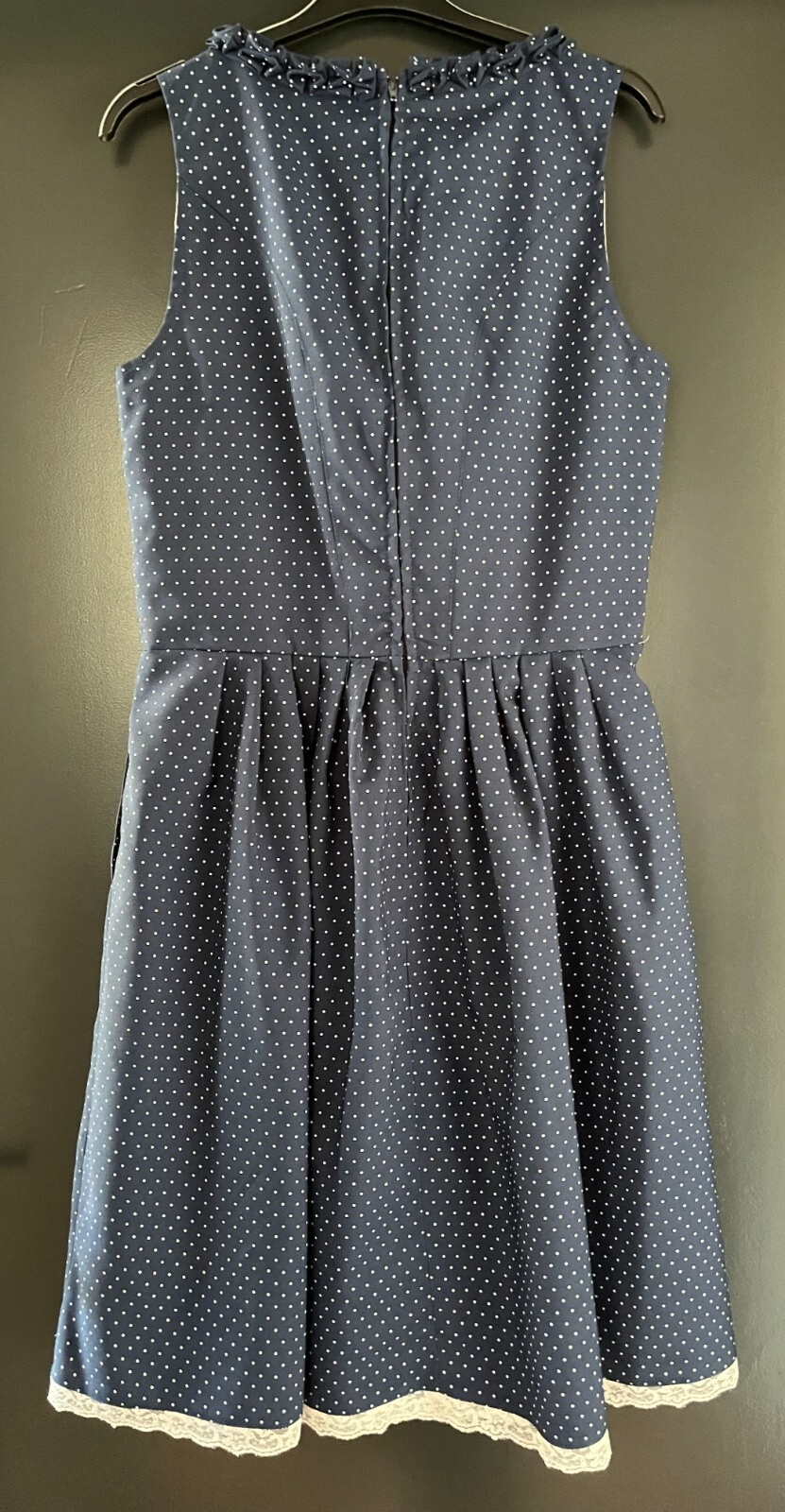 gebrauchtes Damen Trachten Dirndl ärmellosBlau, weiß gepunktetohne SchürzeGr. 36/38 (s. Maße) einfache Brustweite: ca. 45 cmeinfache Taillenweite: ca. 38 cm
