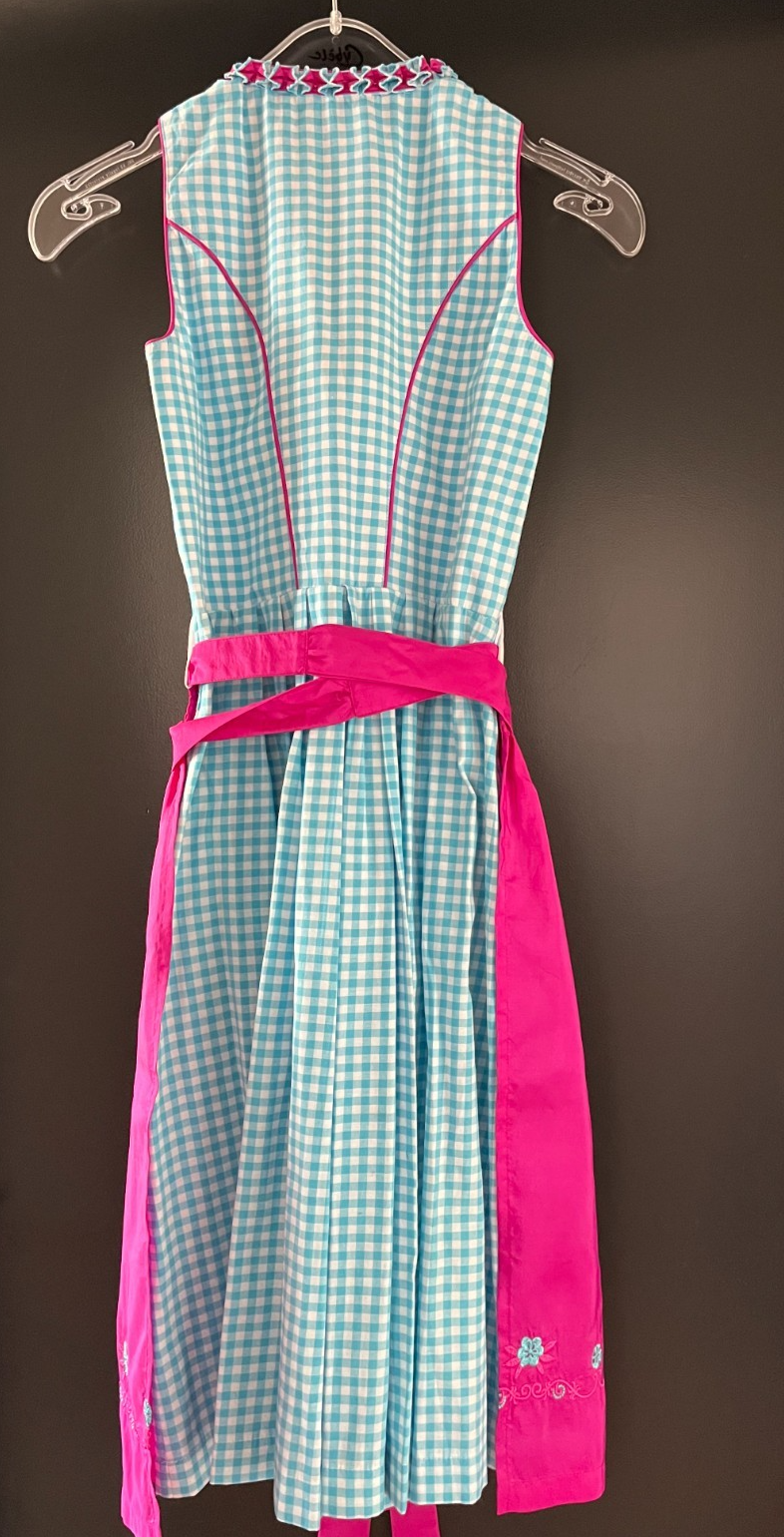 gebrauchtes Damen Trachten Dirndl ärmellosHellblau-Weiß kariert, Rosamit rosa Schürzeca. Gr. 34 einfache Brustweite: ca. 40 cm