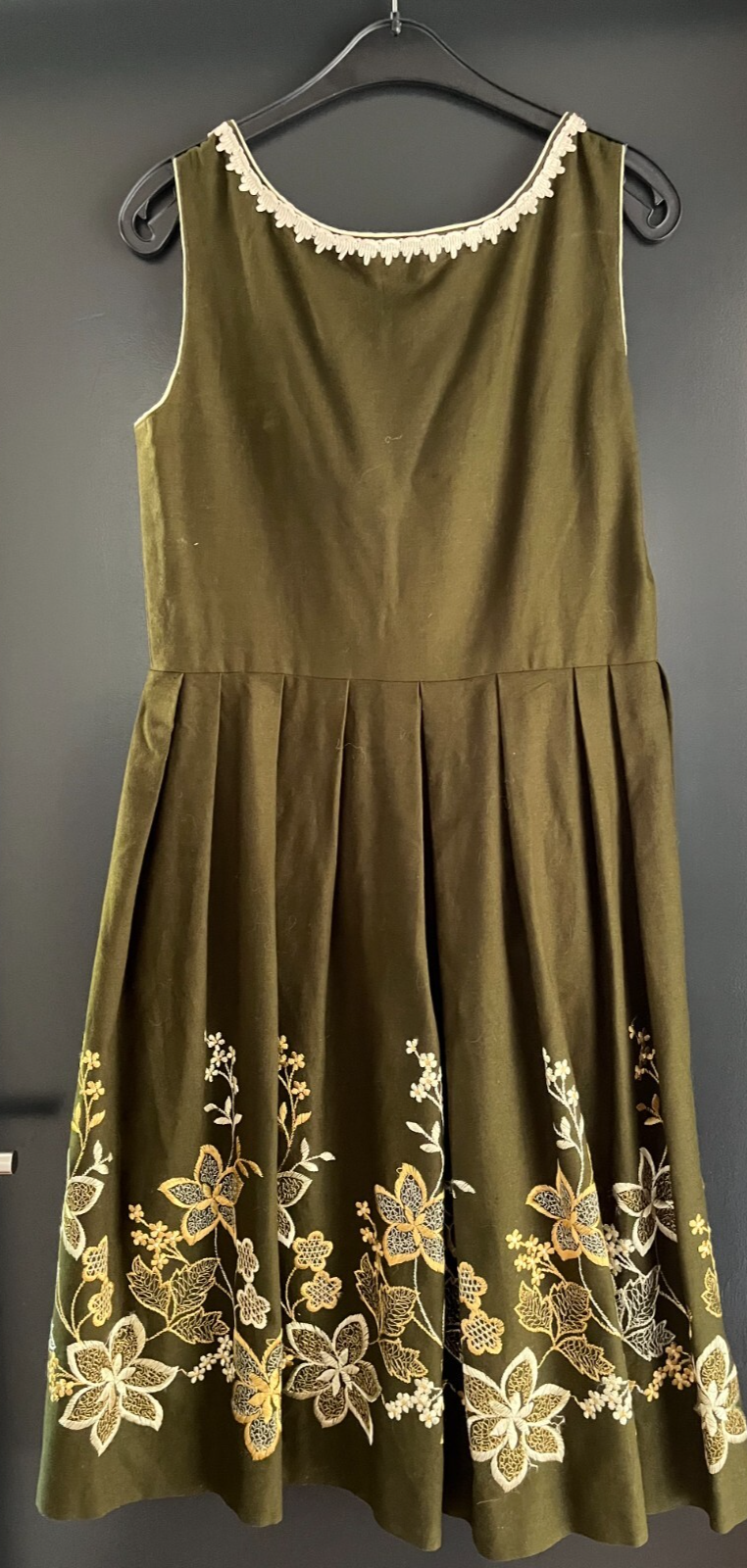 Damen Trachten Dirndl ärmellos braun mit Stickerei ca. Gr. 40 v. Rose-Dirndl