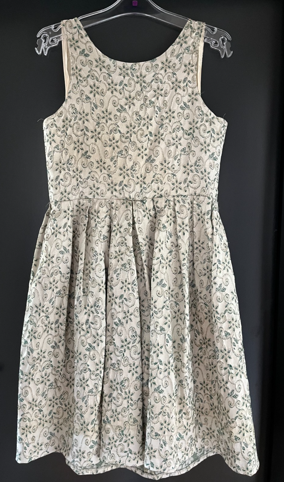 Damen Trachten Dirndl ärmellos Creme, Grün gemustert ca. Gr. 44 v. Rose-Dirndl