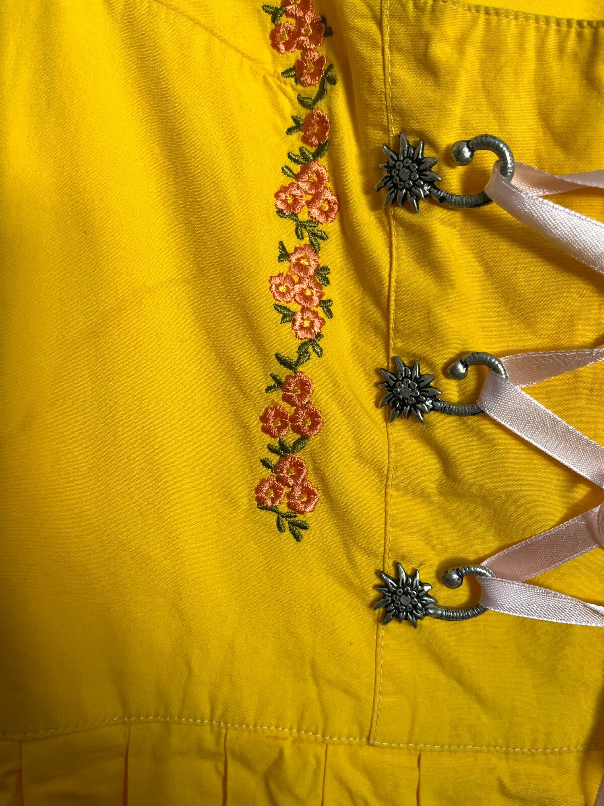 Damen Trachten Dirndl ärmellos gelb mit Stickerei ca. Gr. 40 v. Woiperdinger