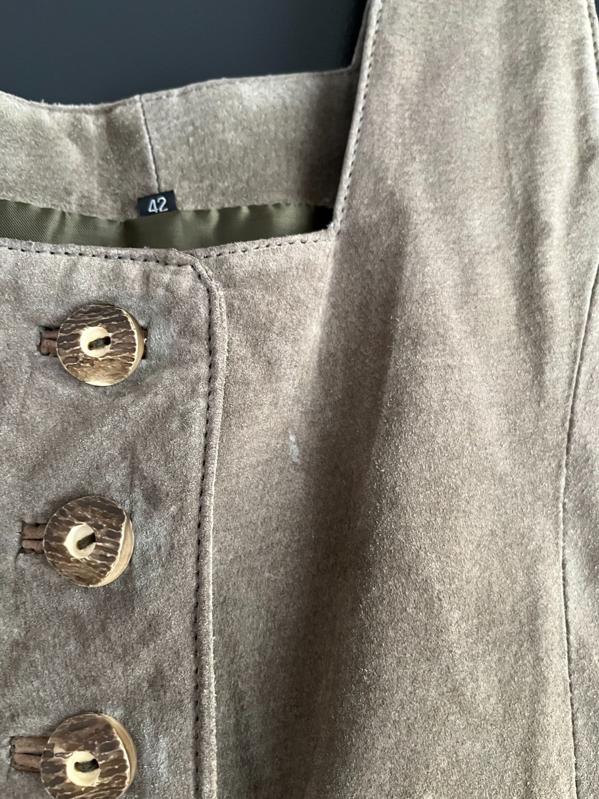 Damen Trachten Dirndl ärmellos grau, beige Echtes Leder Gr. 42