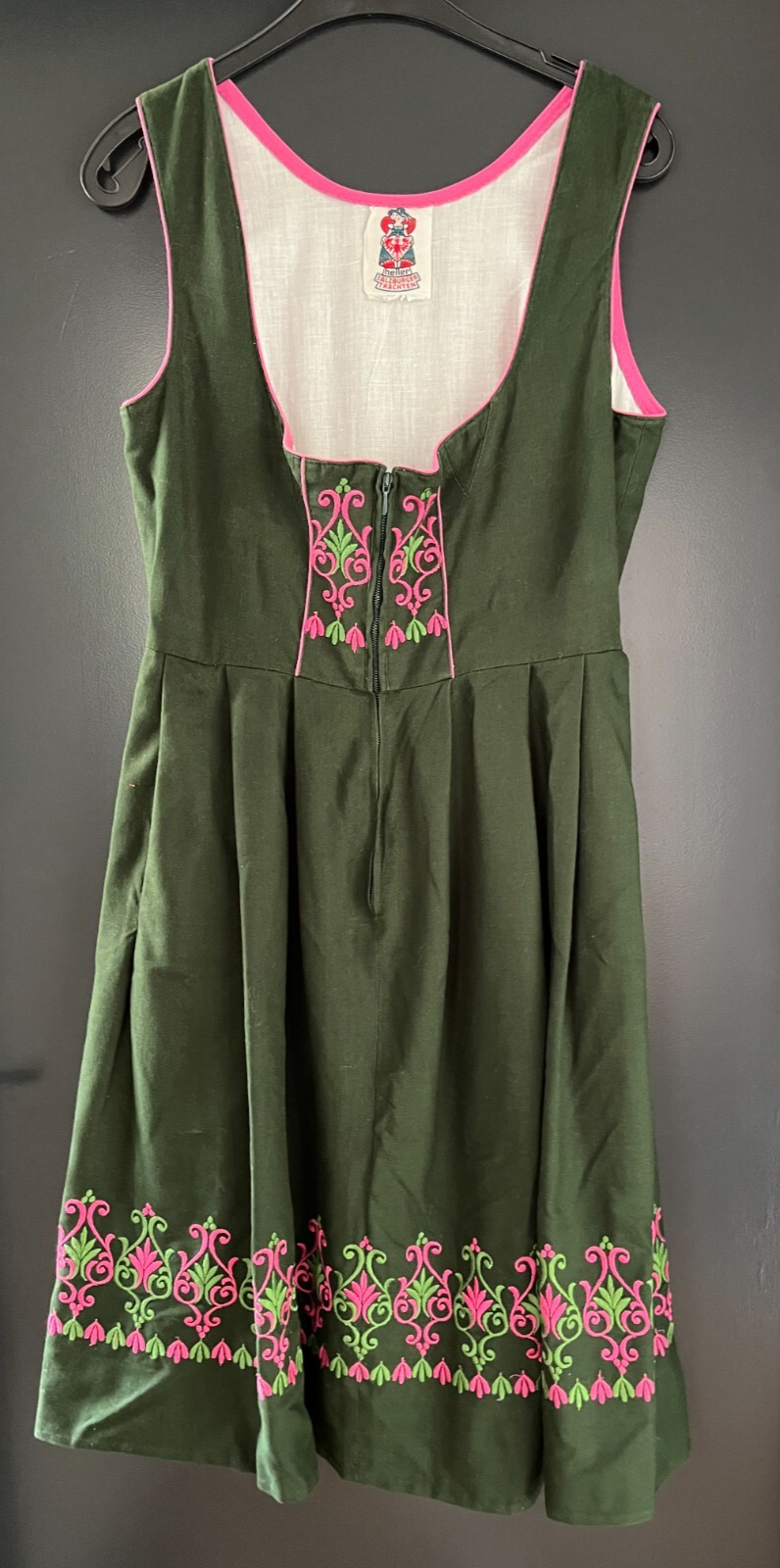 Damen Trachten Dirndl ärmellos Grün mit rosa Stickerei Gr. 38 v. Heller Trachten