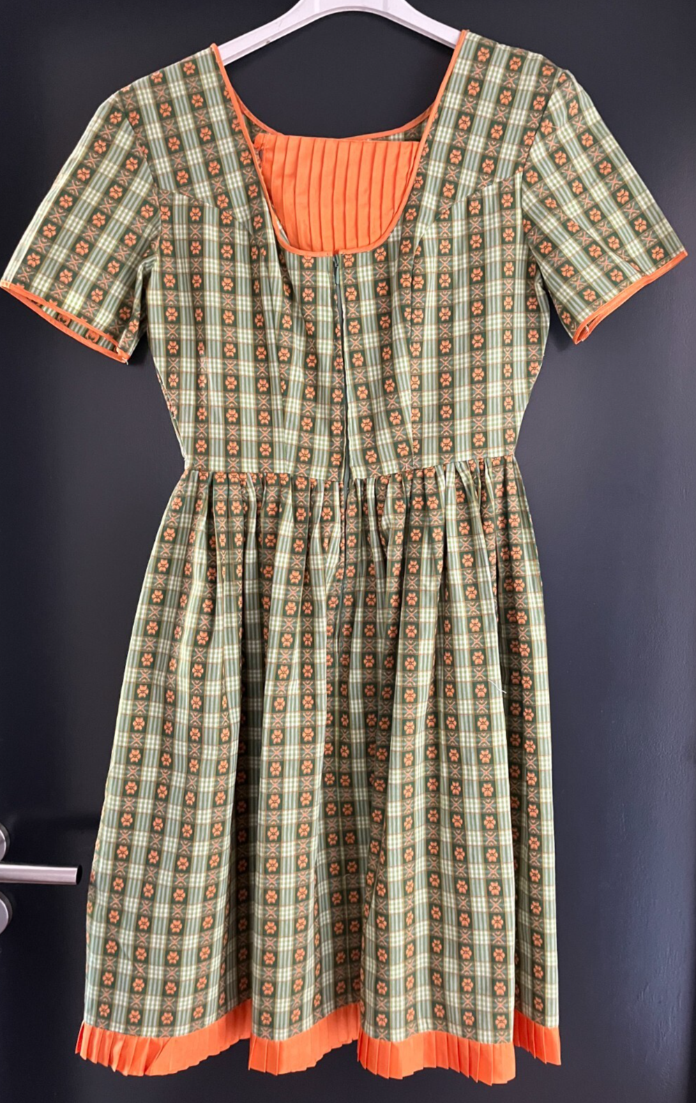 Damen Trachten Dirndl ärmellos grün orange gemustert ca. Gr. 38