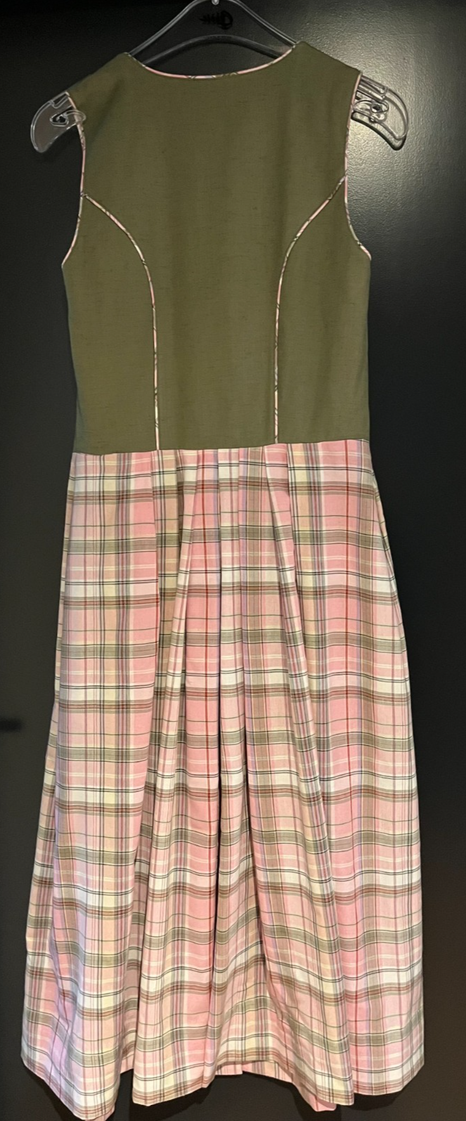 Damen Trachten Dirndl ärmellos Grün, Rosa gemustert ca. Gr. 40