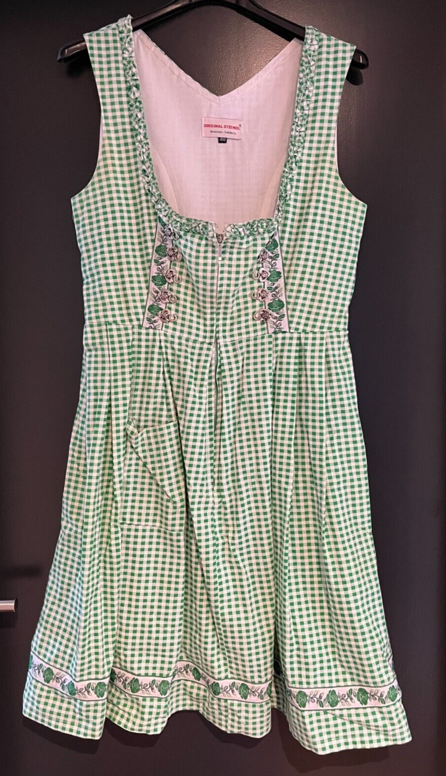 Damen Trachten Dirndl ärmellos grün-weiß kariert Gr. 40 v. Original Steindl