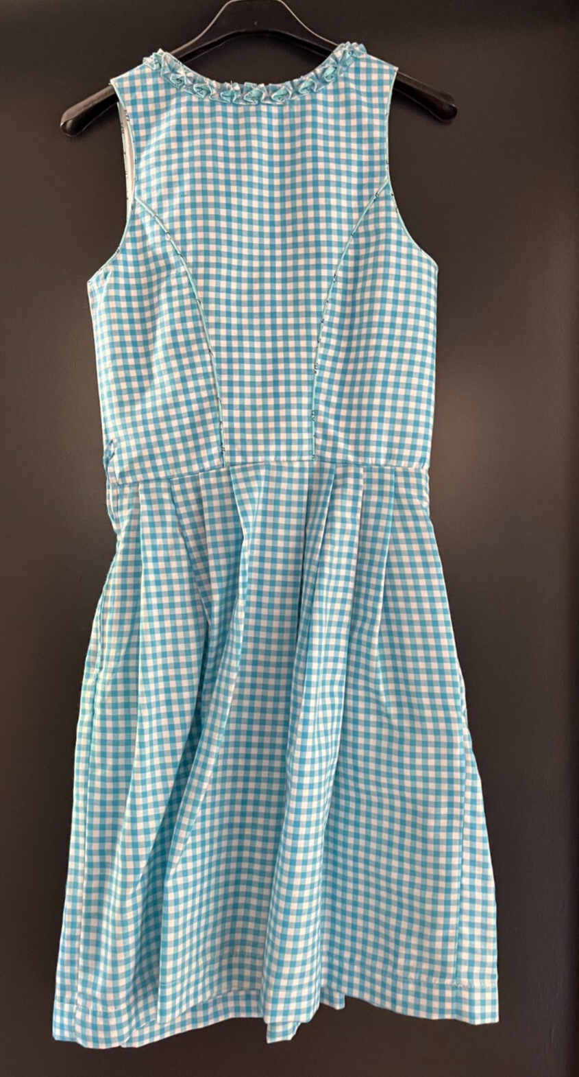 gebrauchtes Damen Trachten Dirndl ärmelloshellblau, weiß kariertohne SchürzeGr. 32 (s. Maße) einfache Brustweite: ca. 39 cmeinfache Taillenweite: ca. 32 cm