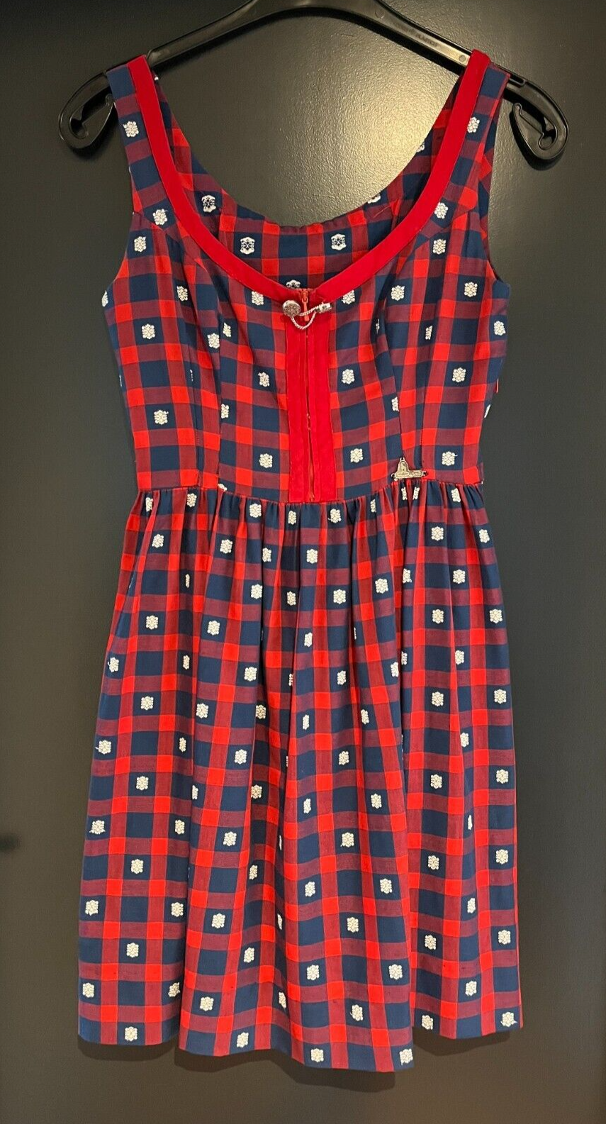 Damen Trachten Dirndl ärmellos rot blau ca. Gr. 36 v. Steinbock