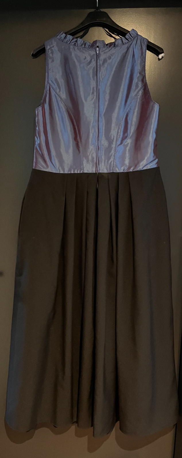 gebrauchtes Damen Trachten Dirndl ärmellosSchwarz, Blau/Lila schimmerndohne SchürzeGr. 38 (s. Maße) einfache Brustweite: ca. 47,5 cmeinfache Taillenweite: ca. 43 cm