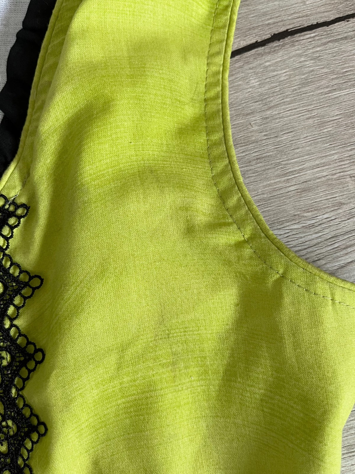 gebrauchtes Damen Trachten Dirndl ärmellosschwarz, grünohne SchürzeGr. 46 (s. Maße)einfache Brustweite: ca. 48 cmeinfache Taillenweite: ca. 43 cm