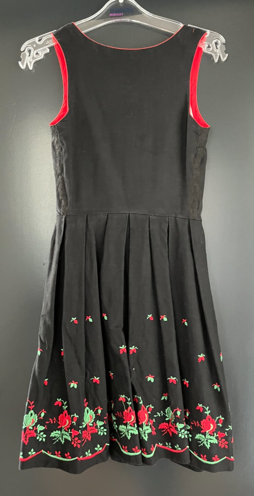 Damen Trachten Dirndl ärmellos schwarz mit Blumenstickerei ca. Gr. 38 v. Wachter