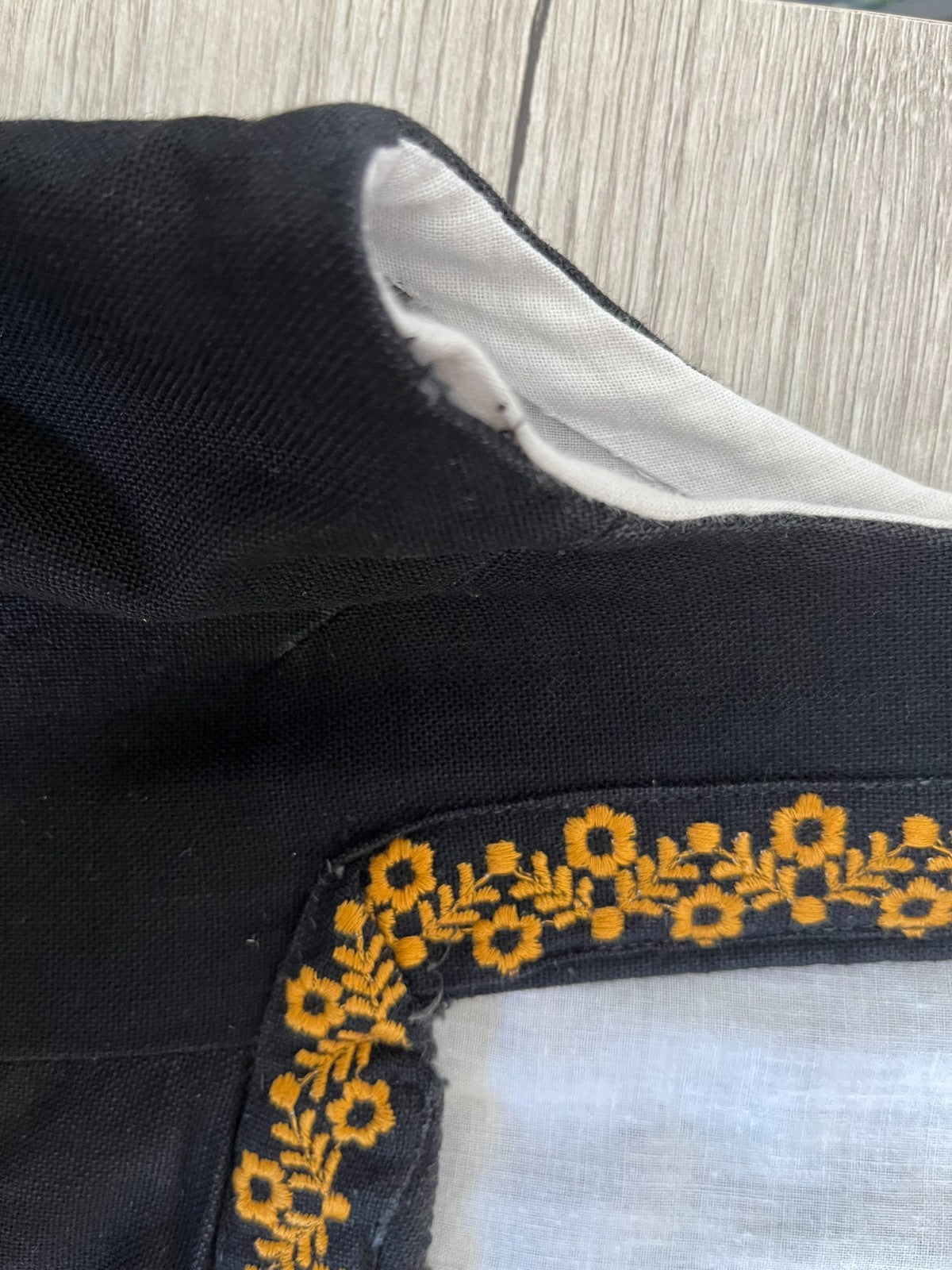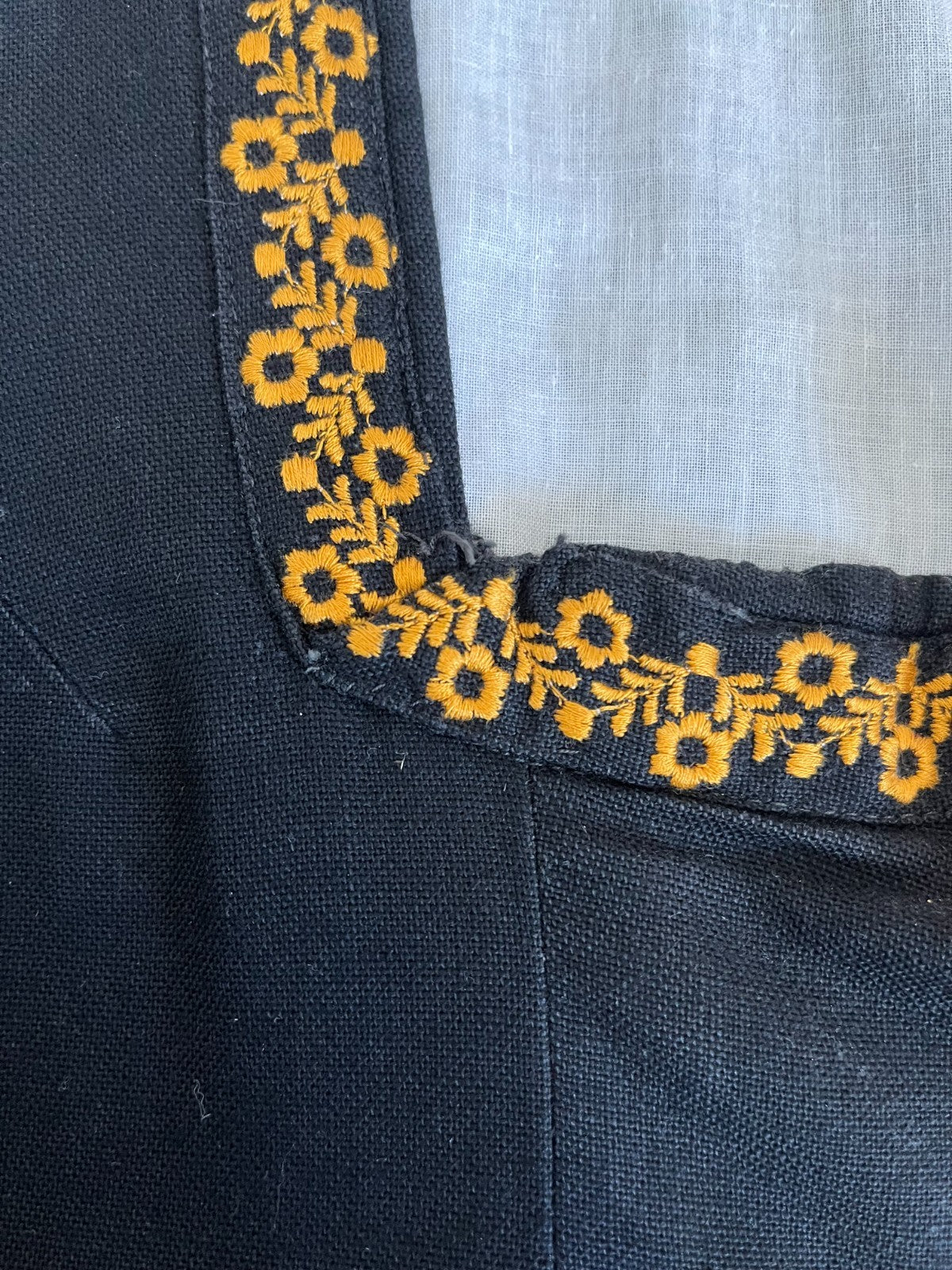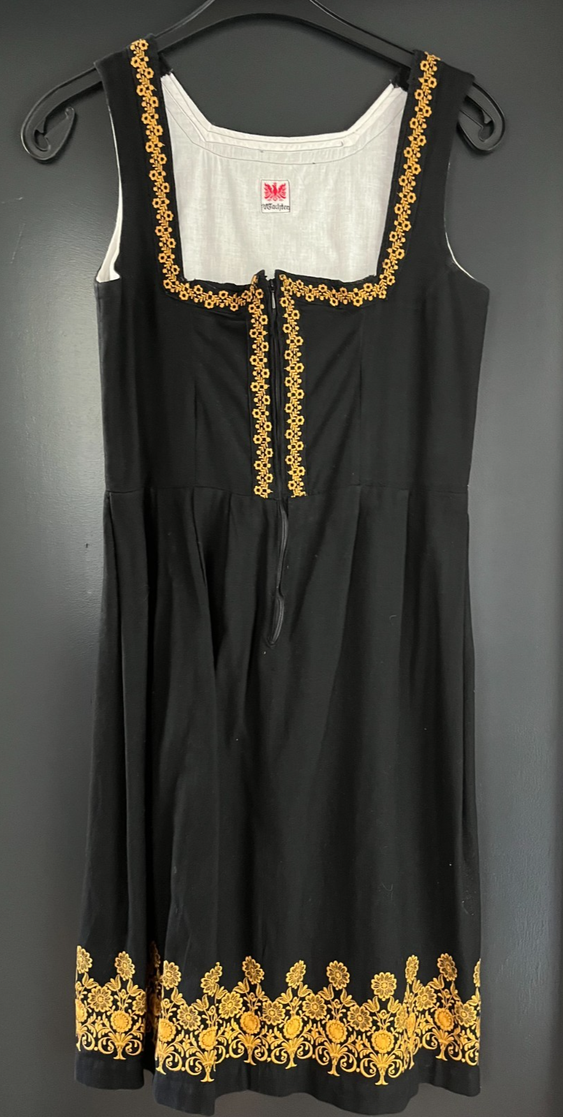 gebrauchtes Damen Trachten Dirndl ärmellosschwarz mit gelber Stickereiohne Schürze
