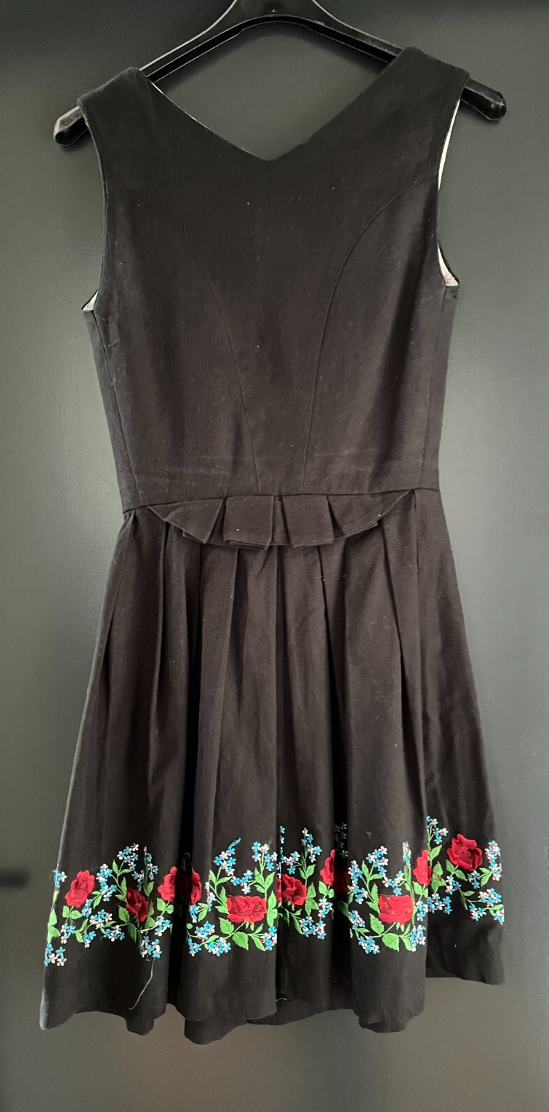 gebrauchtes Damen Trachten Dirndl ärmellosschwarz mit Stickereiohne SchürzeGr. 34 einfache Brustweite: ca. 37 cmeinfache Taillenweite: ca. 31 cm