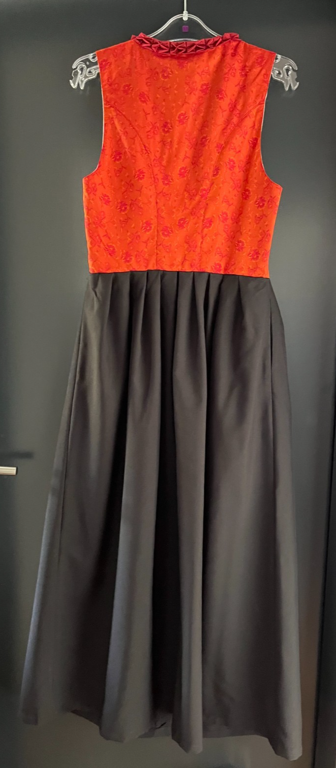 Damen Trachten Dirndl ärmellos schwarz, orange gemustert ca. Gr. 36/38