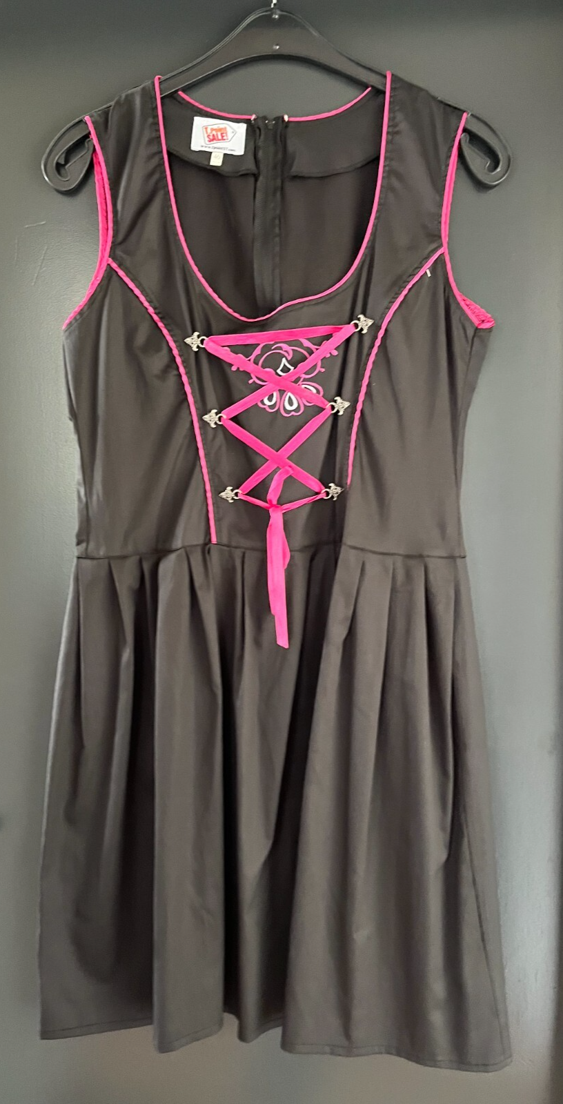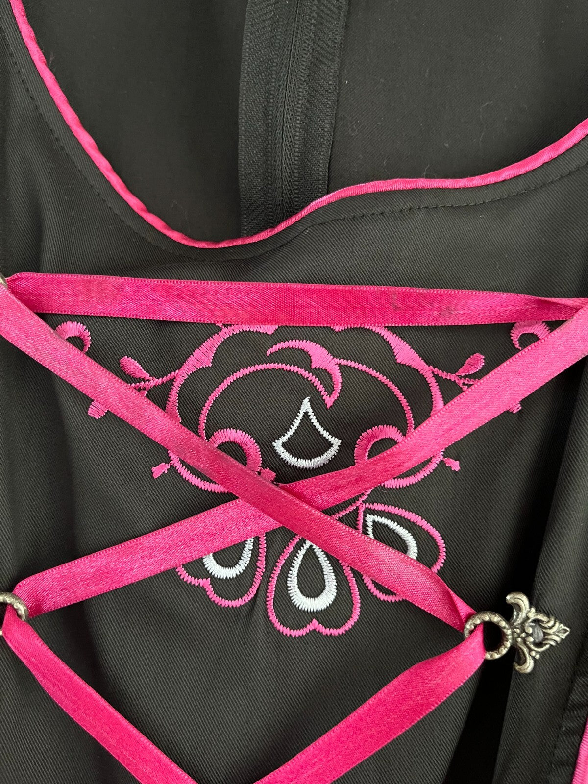gebrauchtes Damen Trachten Dirndl ärmellosschwarz, Rosa Stickereiohne SchürzeGr. 46 (s. Maße)einfache Brustweite: ca. 49 cmeinfache Taillenweite: ca. 43 cm