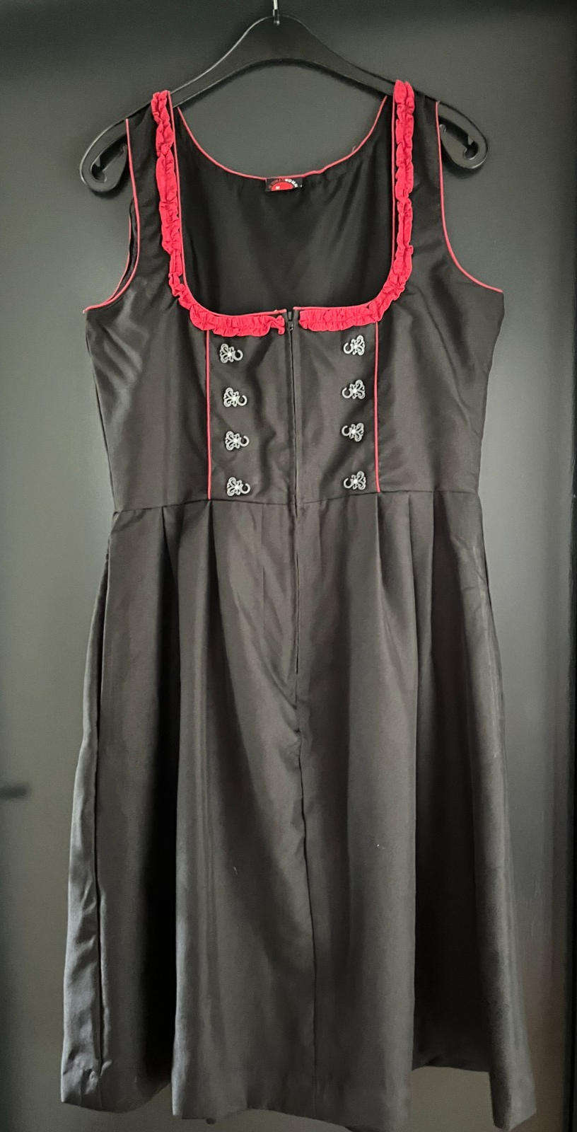 gebrauchtes Damen Trachten Dirndl ärmellosSchwarz, Rotohne SchürzeGr. 38 (s. Maße) einfache Brustweite: ca. 49 cmeinfache Taillenweite: ca. 42 cm
