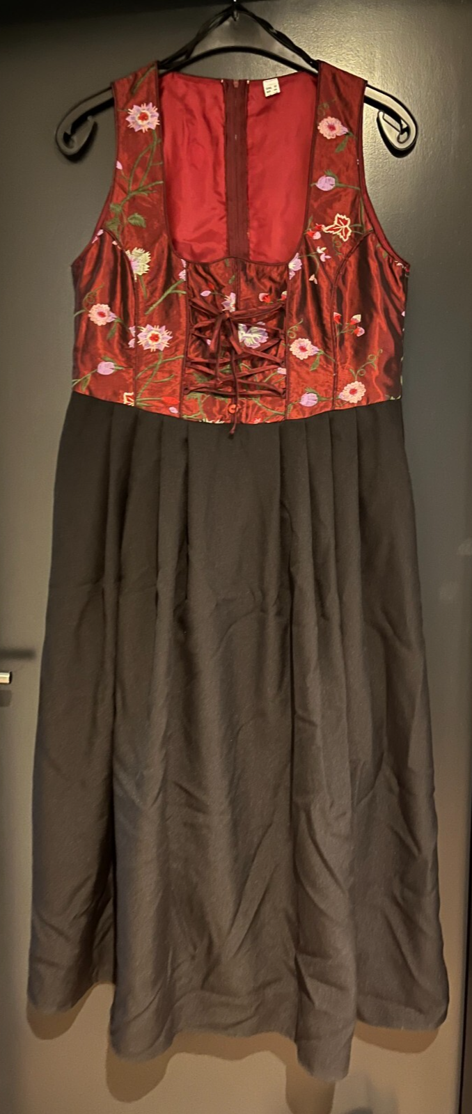 gebrauchtes Damen Trachten Dirndl ärmellosschwarz, rot gemustertohne SchürzeGr. 42 (s. Maße)einfache Brustweite: ca. 50 cm