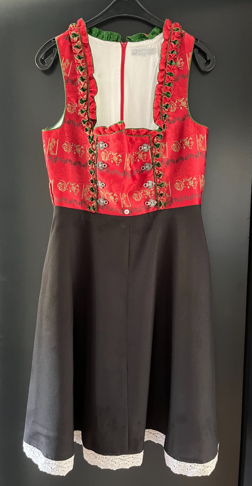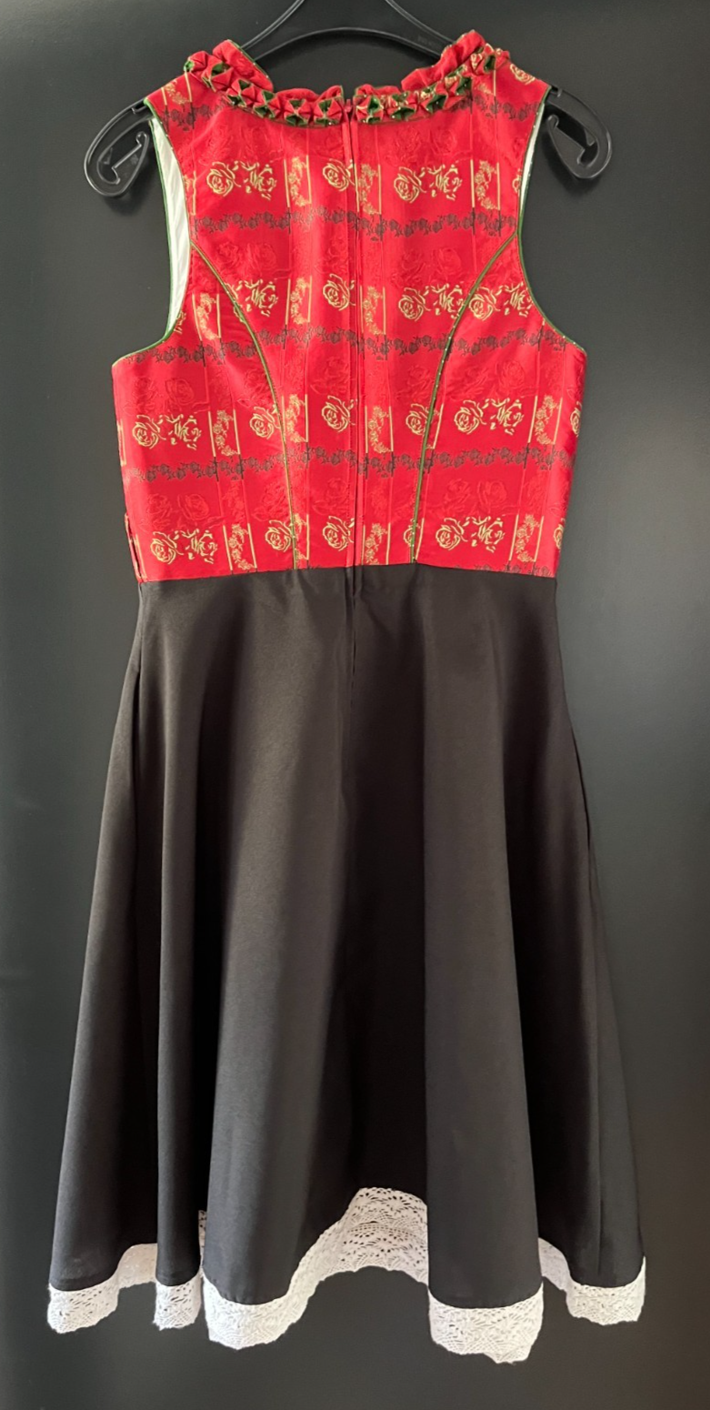 gebrauchtes Damen Trachten Dirndl ärmellosSchwarz, Rot, grün gemustertohne Schürzeohne Größenangabe, schätzungsweise ca. Gr. 40 (s. Maße) einfache Brustweite: ca. 46 cm