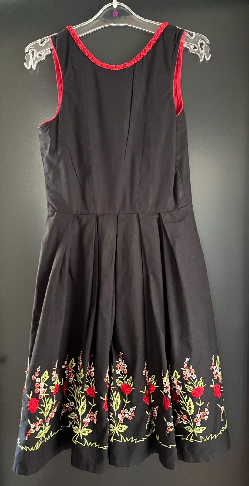 Damen Trachten Dirndl ärmellos schwarz, rot mit Stickerei ca. Gr. 38 v. Skandal