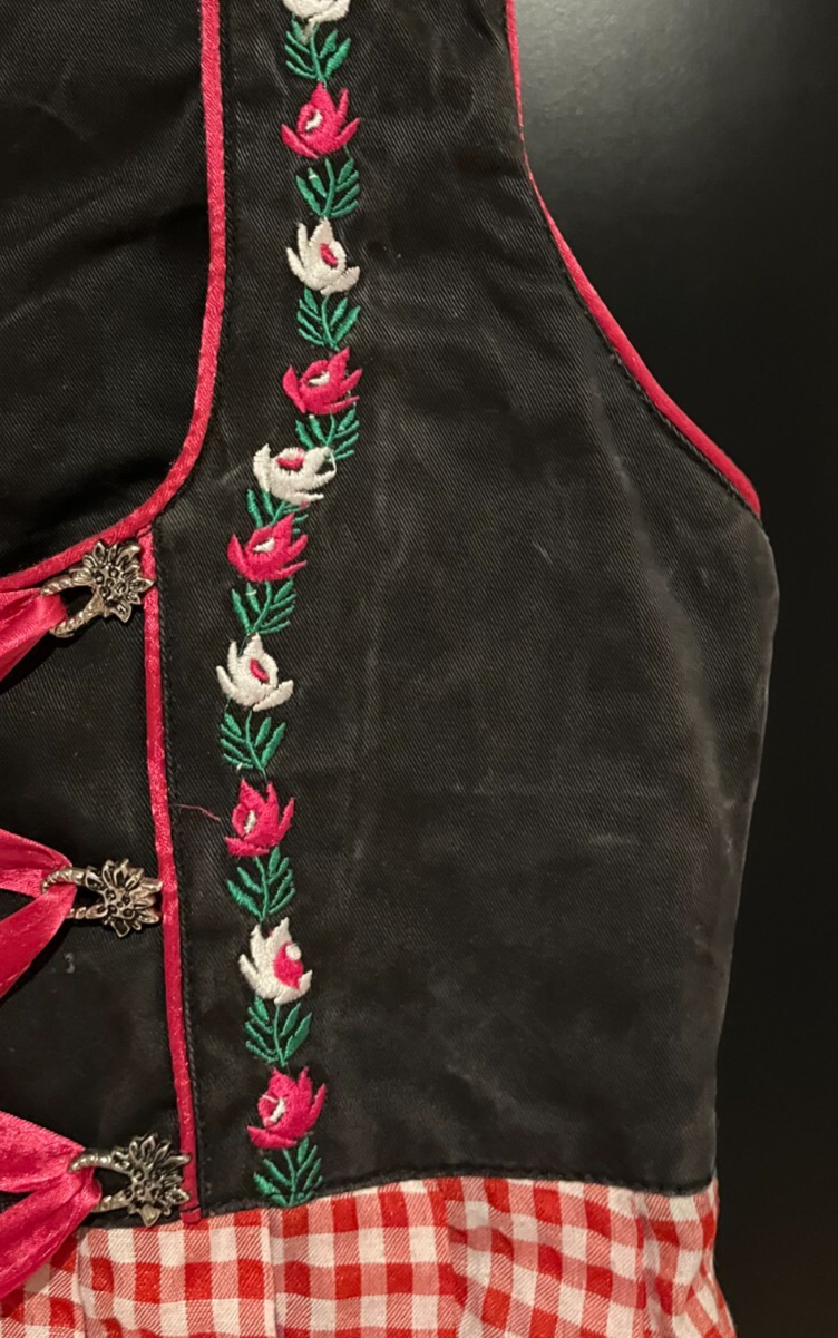 gebrauchtes Damen Trachten Dirndl ärmellosOberteil: Schwarz mit Stickerei Rock: Rot-Weiß kariertohne SchürzeGr. 36 (s. Maße) einfache Brustweite: ca. 43 cm