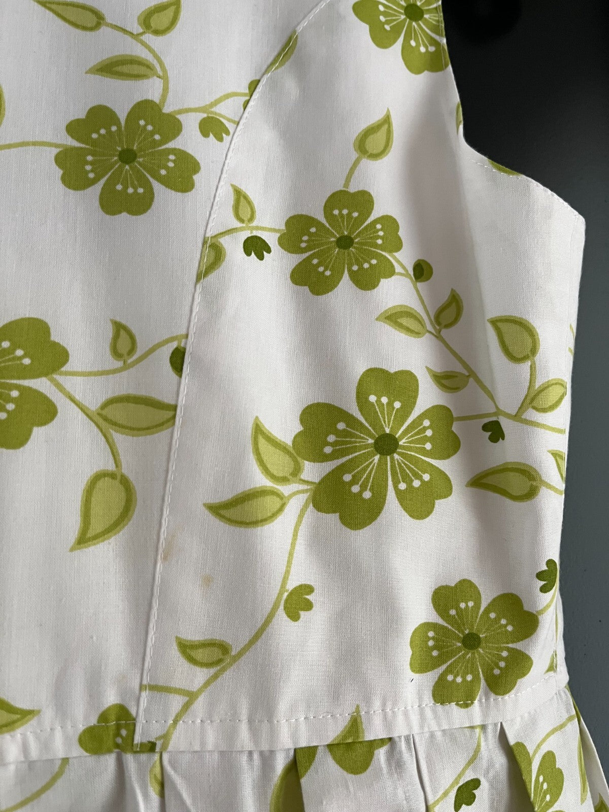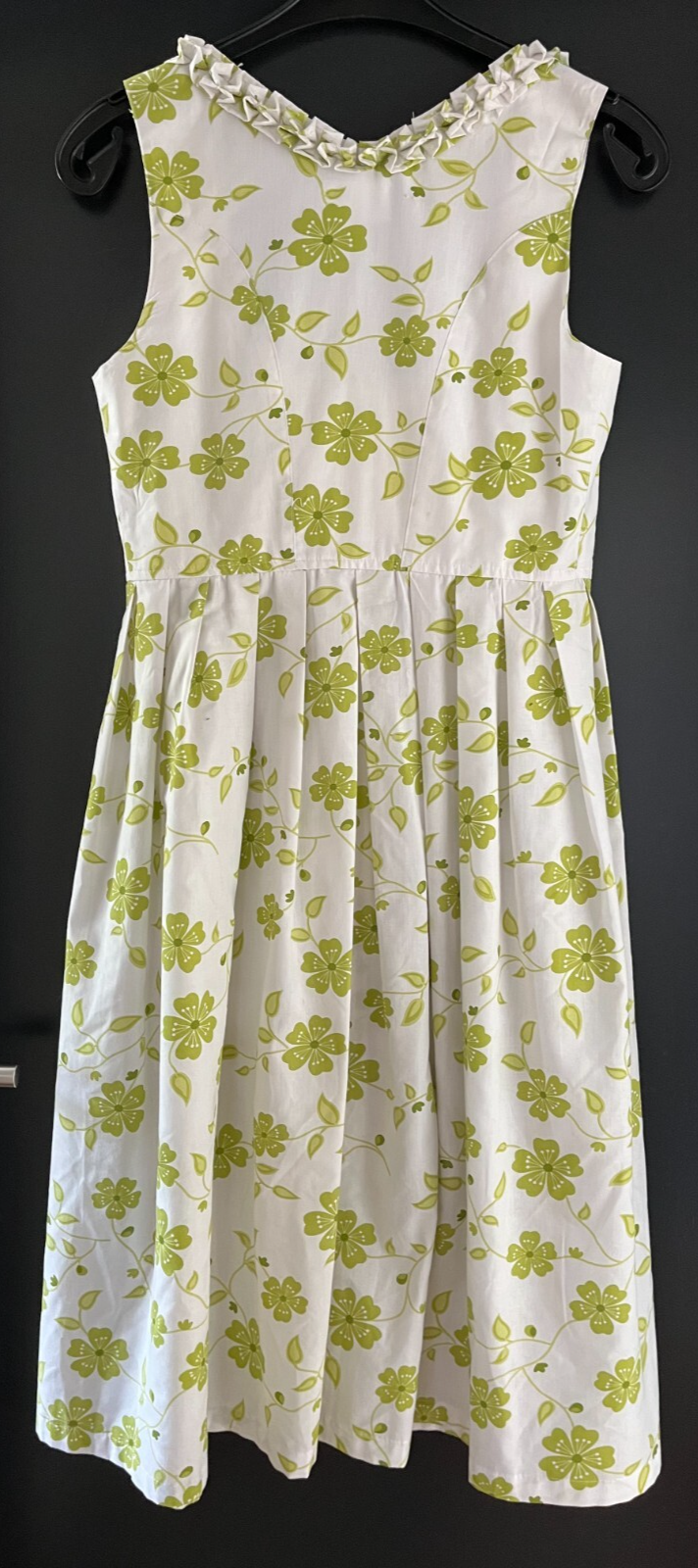 gebrauchtes Damen Trachten Dirndl ärmellosweiß, grün gemustertohne Schürzeca. Gr. 38 (s. Maße)einfache Brustweite: ca. 45 cmeinfache Taillenweite: ca. 39 cm