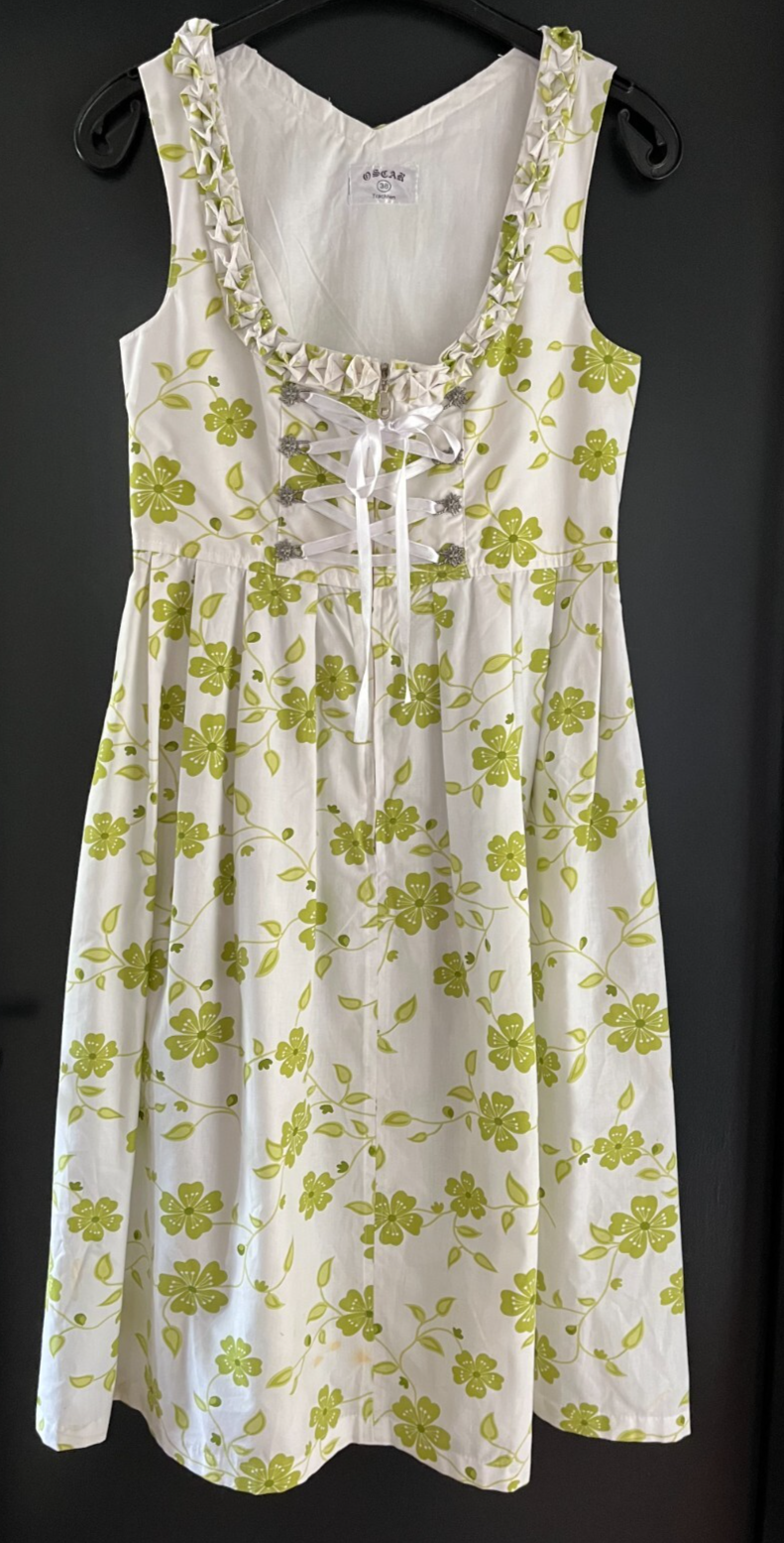 Damen Trachten Dirndl ärmellos weiß, grün gemustert ca. Gr. 38 v. Oscar Trachten