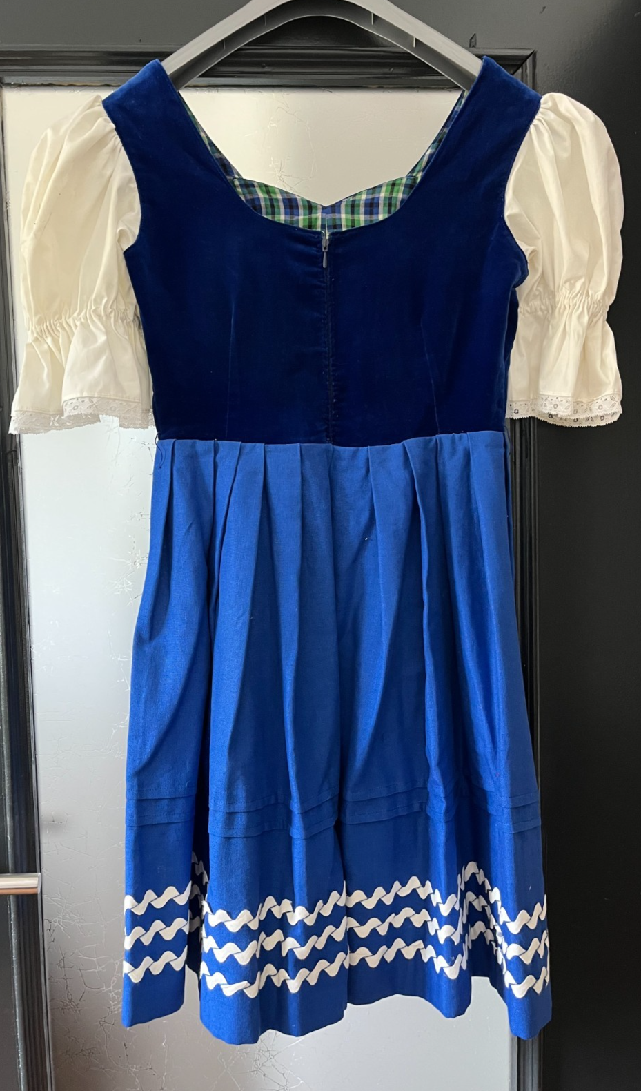 gebrauchtes Damen Trachten Dirndl kurzarmBlau Samt mit weißen Ärmelnohne Schürzeohne Größenangabe, schätzungsweise ca. Gr. 38 (s. Maße)einfache Brustweite: ca. 43 cmeinfache Taillenweite: ca. 35 cm