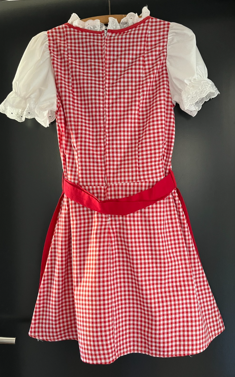 gebrauchtes Damen Trachten Dirndl kurzarmRot-weiß kariertmit roter Schürzeohne Größenangabe, schätzungsweise ca. Gr. 38 (s. Maße) einfache Brustweite: ca. 47 cm