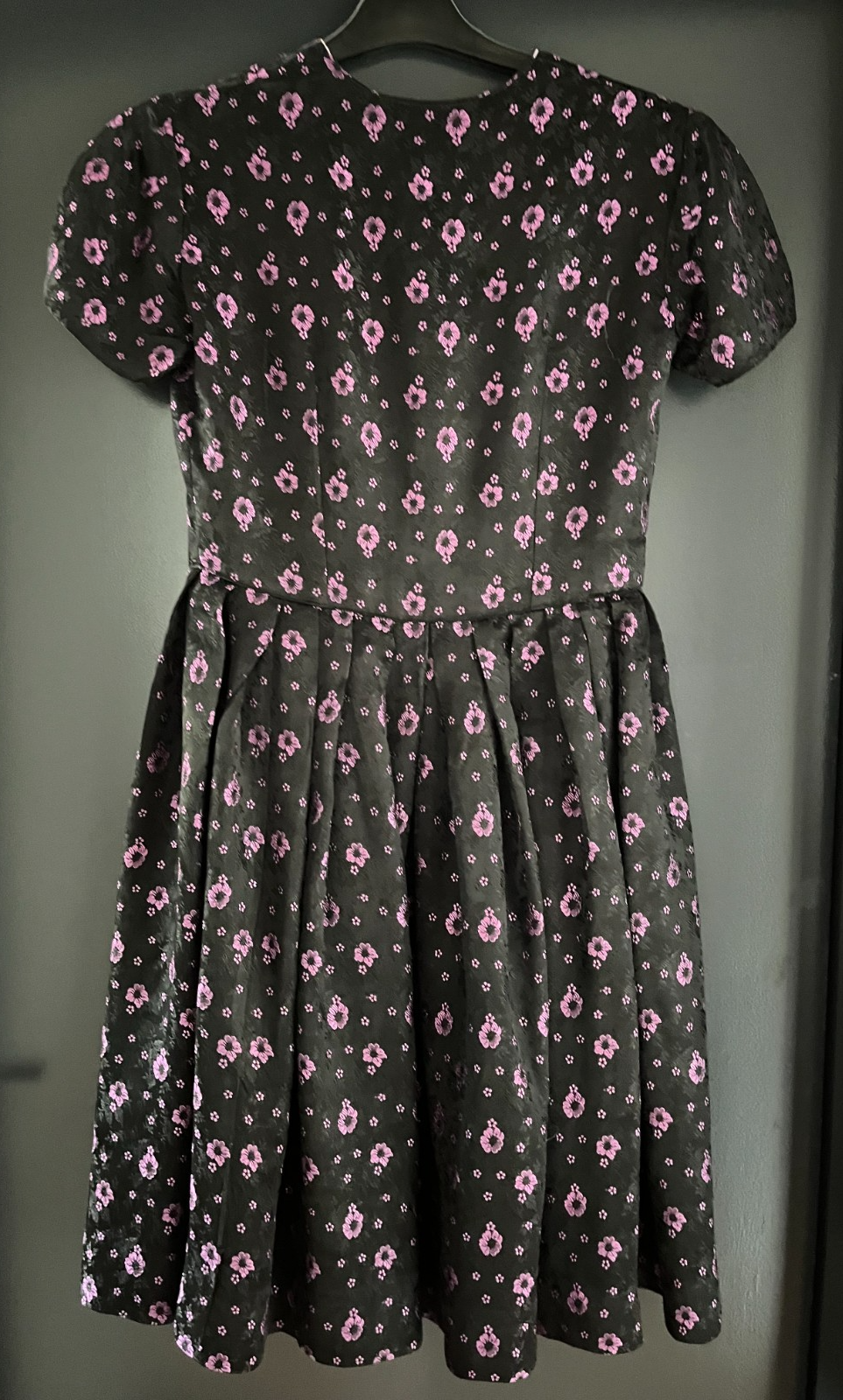 gebrauchtes Damen Trachten Dirndl kurzarmSchwarz, Lila geblümtohne Schürzeohne Größenangabe, schätzungsweise Gr. 38 (s. Maße) einfache Brustweite: ca. 44 cmeinfache Taillenweite: ca. 36 cm