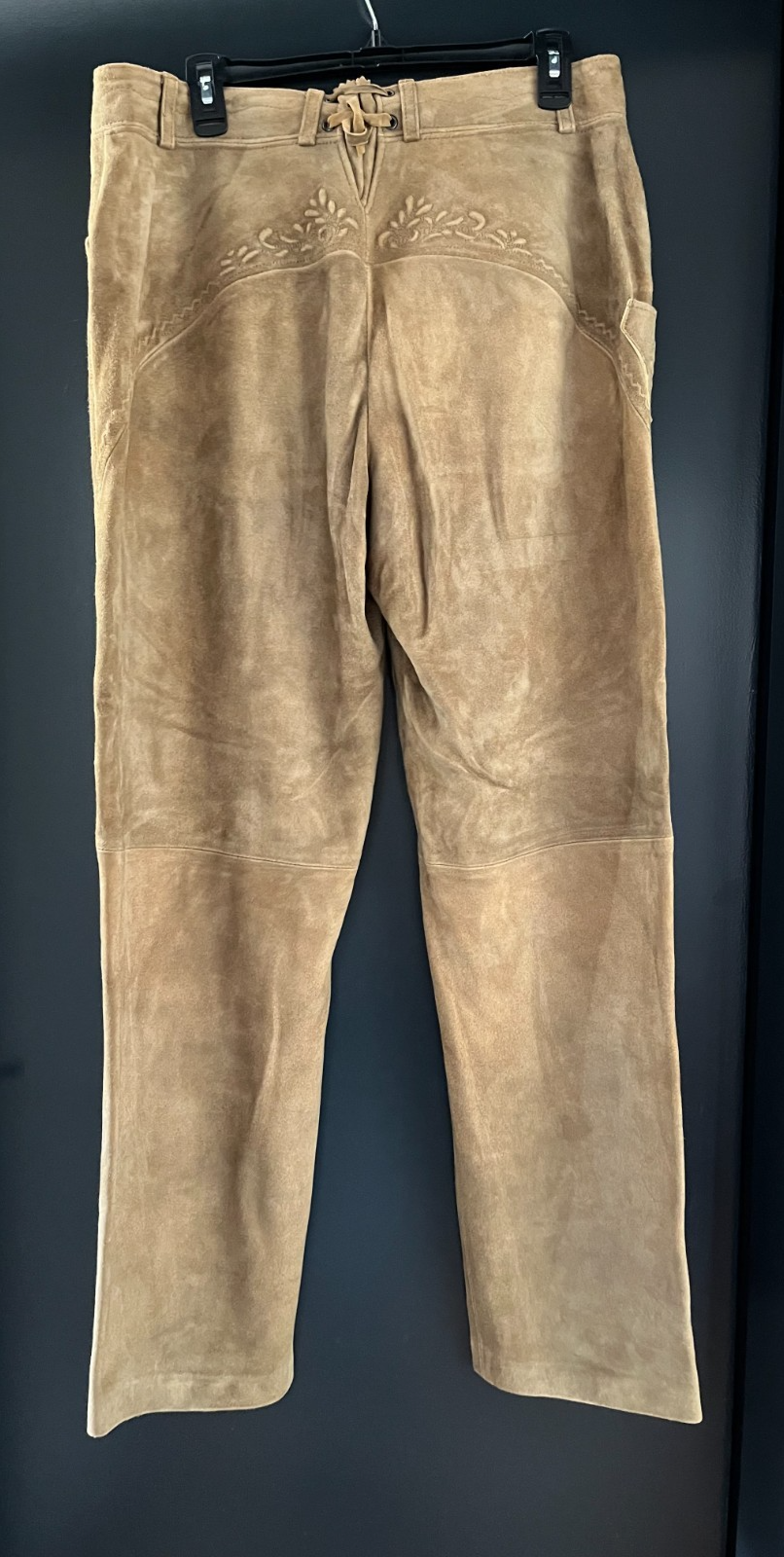 einfache Bundweite: ca. 43 cm Innenbeinlänge: ca. 80 cmAußenbeinlänge: ca. 108 cm Material: Echtes Leder/Ziegen-Velour