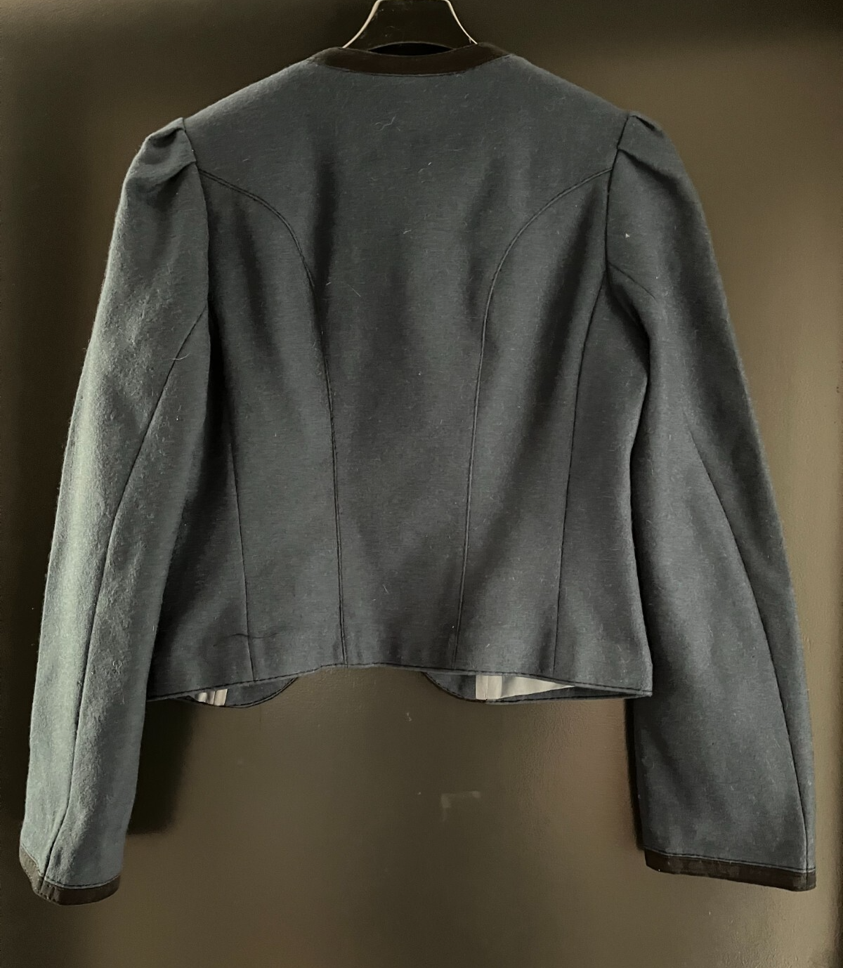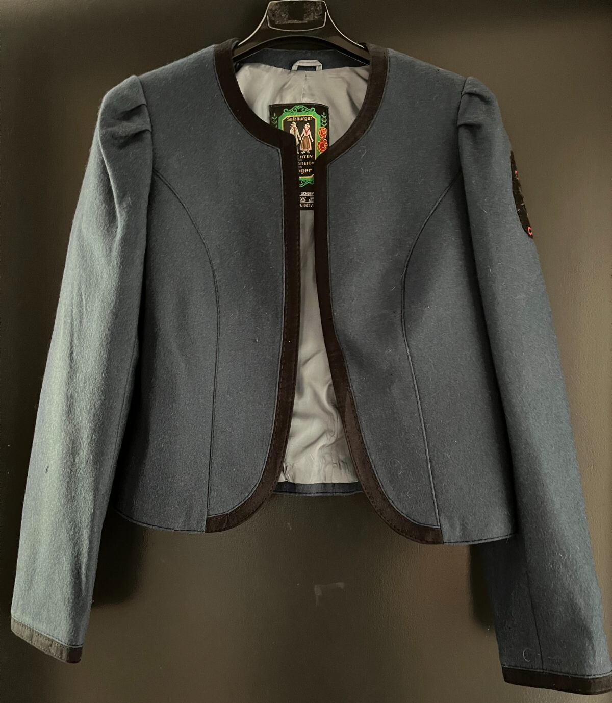 gebrauchter Damen Trachten Janker/JackeBlauohne Größenangabe, schätzungsweise ca. Gr. 36 (s. Maße)Schulterweite: ca. 33 cm Brustweite: ca. 42 cmGesamtlänge ab Schulter: ca. 48 cmArmlänge ab Schulter: ca. 53 cmMaterial: