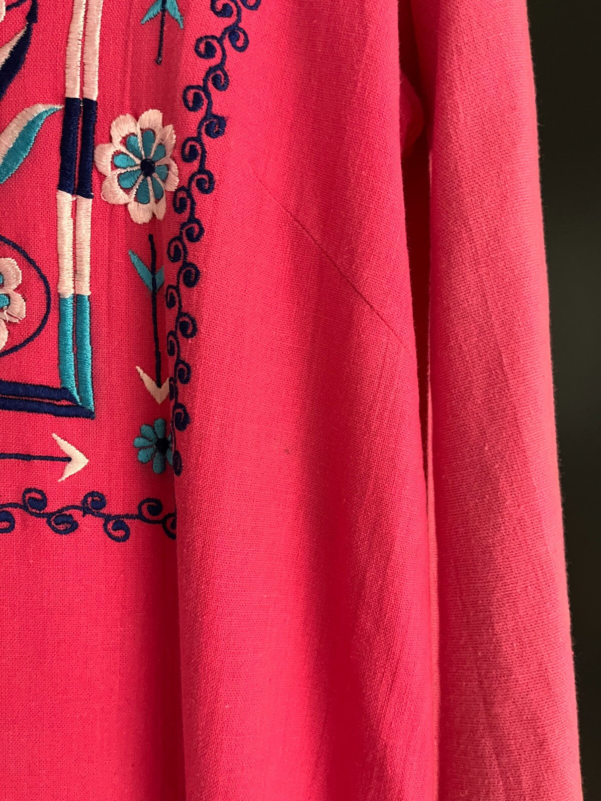 gebrauchtes Damen Trachten Kleid langarm rosa mit blauer Stickereiohne Größenangabe, schätzungsweise Gr. 44 v. Eleganceeinfache Brustweite: ca. 51 cm Ärmellänge ab Schulter: ca. 55 cm