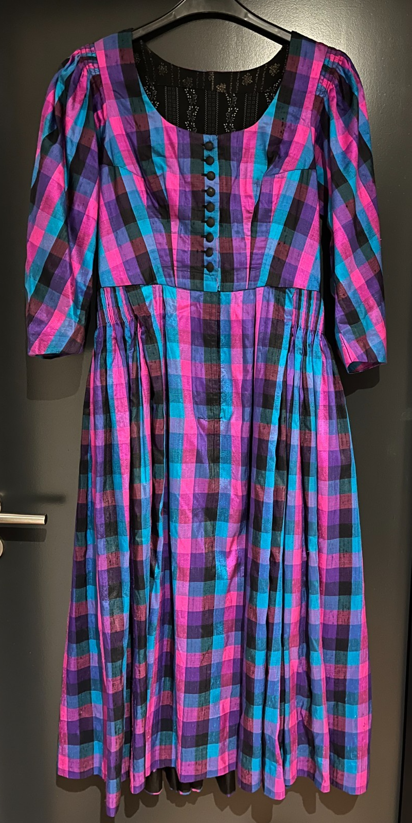 gebrauchtes Damen Trachten Dirndl 3/4-Armmehrfarbig gemustertohne Schürzeca. Gr. 40 (s. Maße) einfache Brustweite: ca. 46 cmeinfache Taillenweite: ca. 38 cm