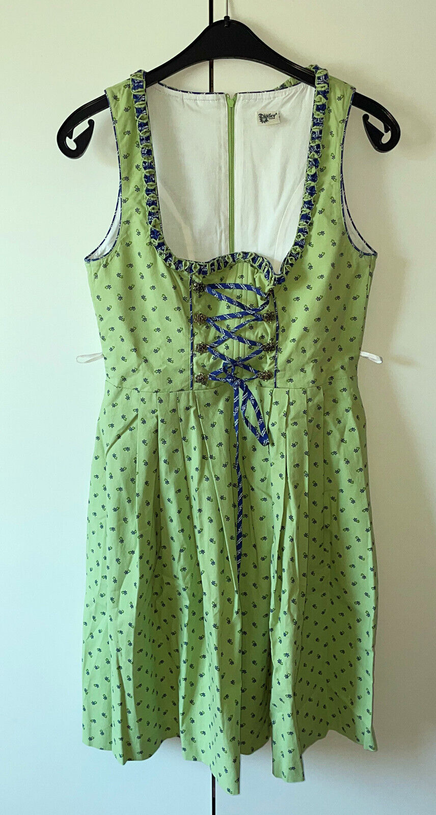 Damen Trachten Dirndl ärmellos Grün geblümt Gr. 42 v. Distler