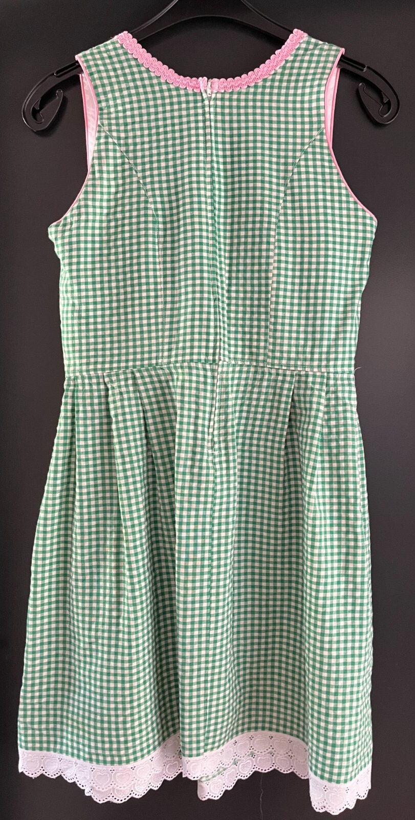 gebrauchtes Damen Trachten Dirndl ärmellosgrün-weiß kariert, Rosaohne SchürzeGr. 38 (s. Maße)einfache Brustweite: ca. 45 cmeinfache Taillenweite: ca. 39 cm