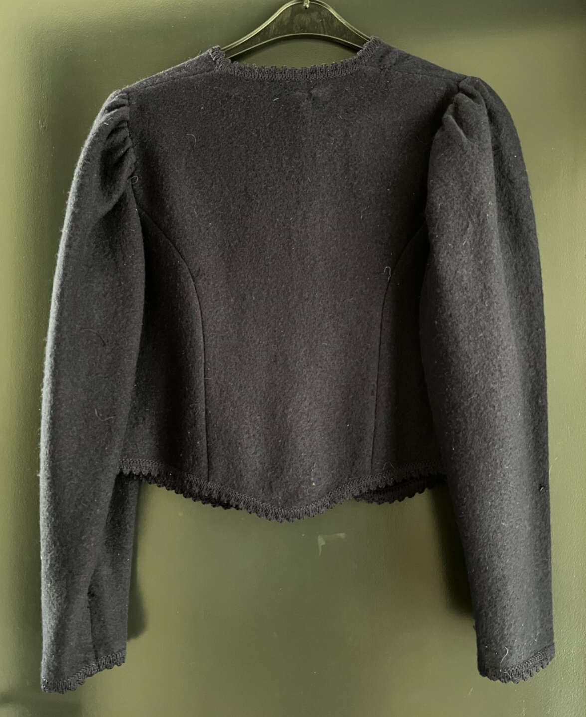 gebrauchter Damen Trachten Janker/Jackedunkelblauca. Gr. 44 (s. Maße)einfache Brustweite: ca. 54 cmSchulterweite: ca. 39 cm Gesamtlänge ab Schulter: ca. 50 cmArmlänge ab Schulter: ca. 62 cm