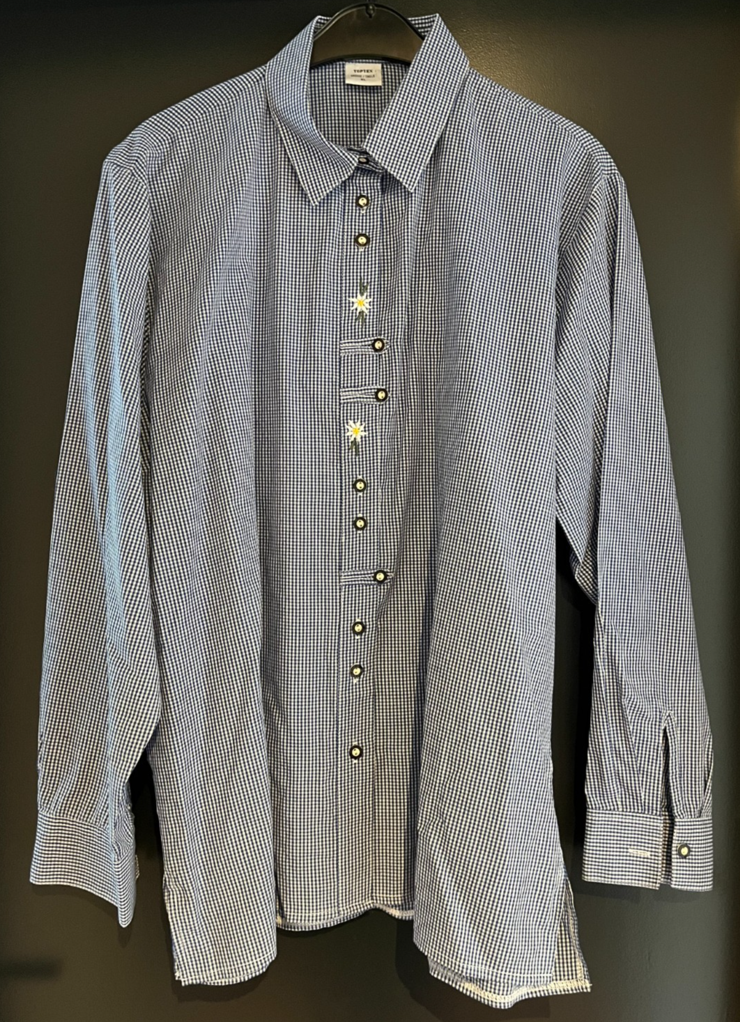 Herren Trachten Hemd langarm Blau-Weiß kariert Gr. XL