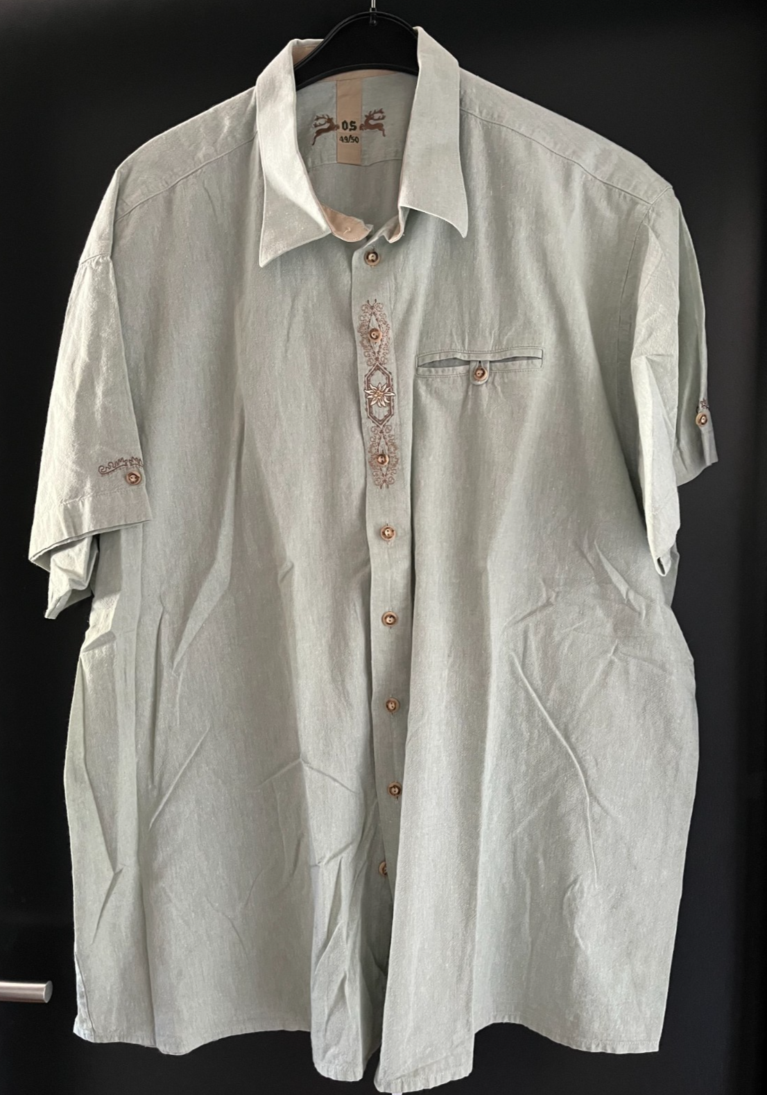 Herren Trachten Hemd kurzarm grün Gr. 49/50 v. OS Trachten