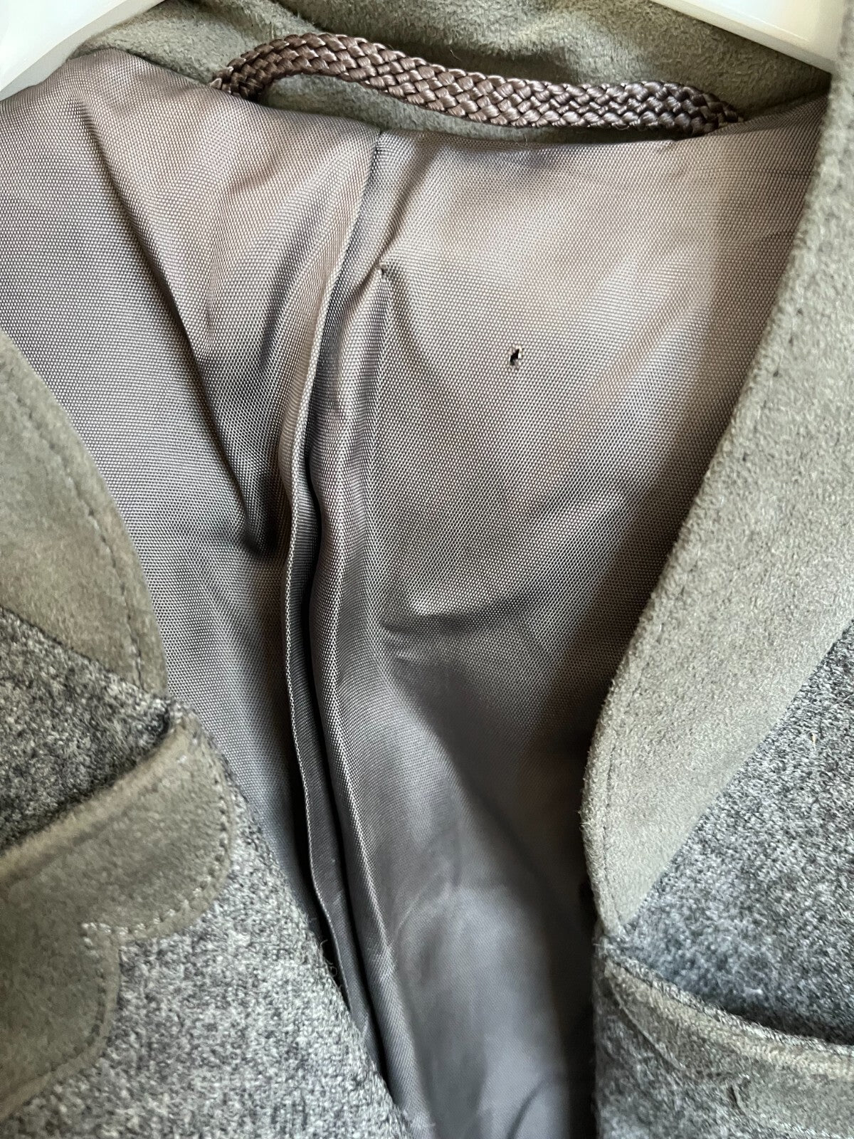 gebrauchter Damen Trachten Janker/Jacke Grauohne Größenangabe, schätzungsweise Gr. 42 (s. Maße)Schulterweite: ca. 41 cm Brustweite: ca. 54 cmGesamtlänge ab Schulter: ca. 55 cmArmlänge ab Schulter: ca. 54 cmMaterial: