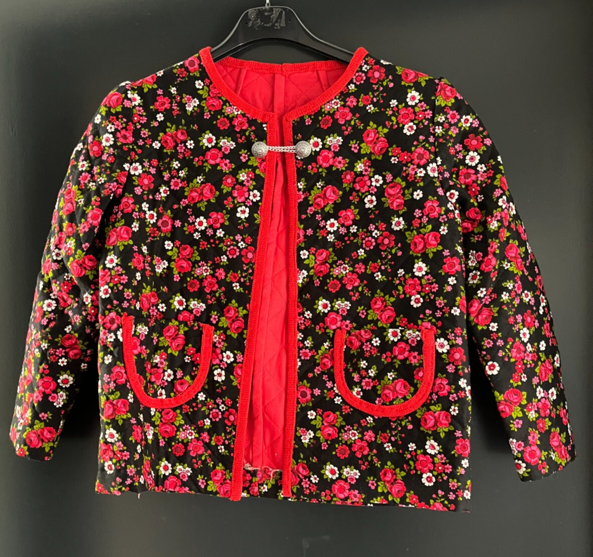 Damen Trachten Janker/Jacke Schwarz Rot geblümt ca. Gr. 38