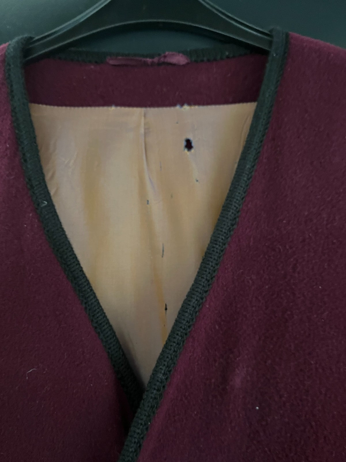 gebrauchter Damen Trachten Janker/Jackeweinrotca. Gr. 56 (s. Maße)einfache Brustweite: ca. 58 cmSchulterweite: ca. 50 cm Gesamtlänge ab Schulter: ca. 77 cmArmlänge ab Schulter: ca. 60 cm