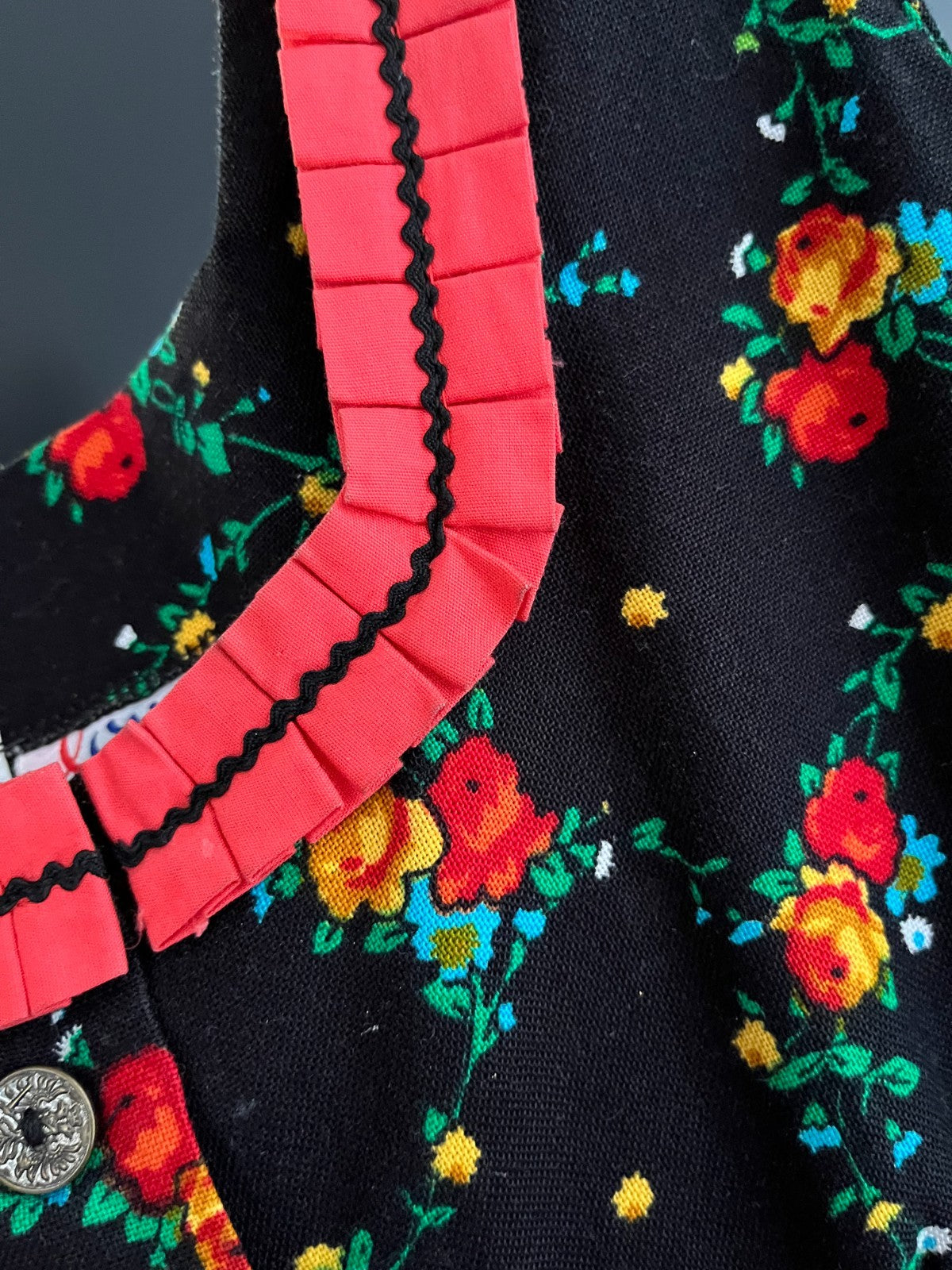 Kinder Trachten Dirndl ärmellos schwarz mit Blumenmuster und Schürze Gr. ca. 140
